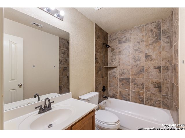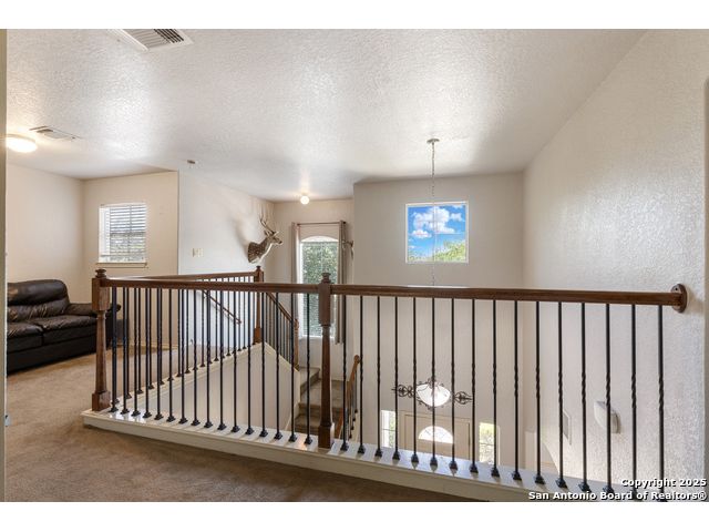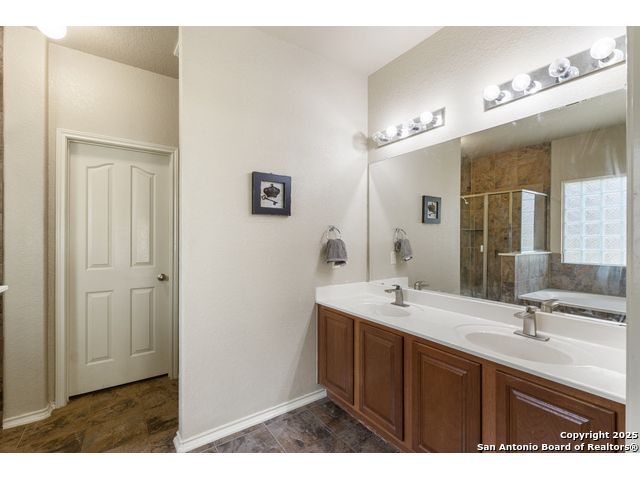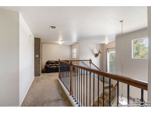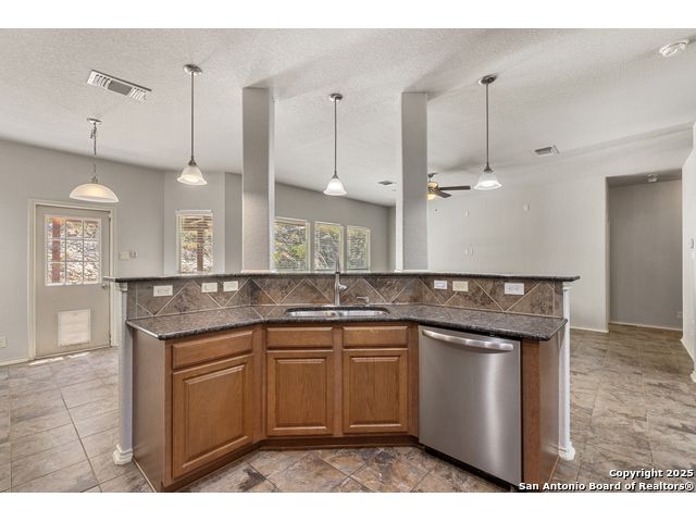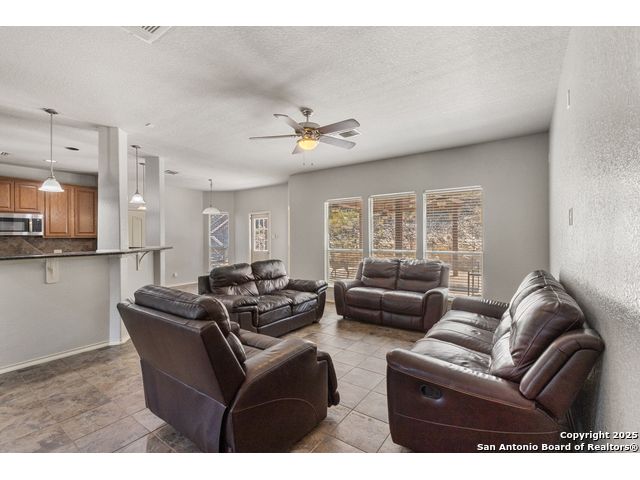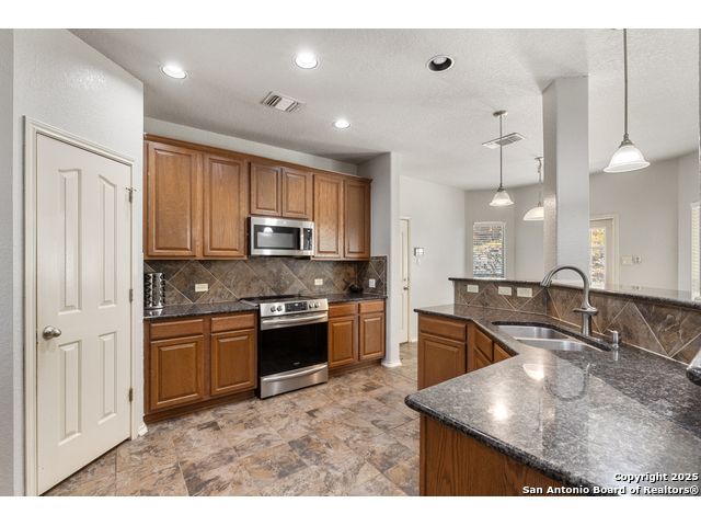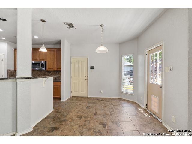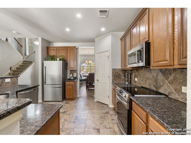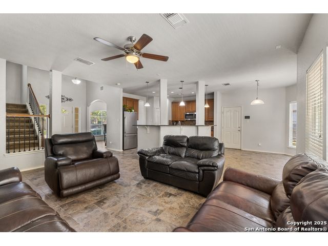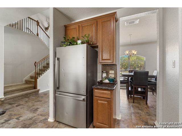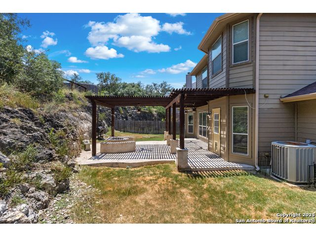 Perfectly situated on a quiet cul-de-sac just off Highway 35 and minutes from Randolph AFB, this stunning 4-bedroom, 2.5-bath home offers the ideal blend of comfort, space, and convenience. Set on a generous 0.28-acre lot, it's close to top restaurants, shopping, and entertainment. From the moment you arrive, you'll be greeted by gorgeous curb appeal, complete with mature shade trees. Step inside to high ceilings and an abundance of natural light from the home's many windows. To your left, a separate dining room sets the stage for elegant gatherings, flowing seamlessly into the spacious kitchen with granite countertops, ample prep space, and an adjoining breakfast nook. The open floor plan continues into the large living room, perfect for everyday living and entertaining, including 3 pre-wired outlets for a surround sound speaker system. The first floor primary suite is generously sized and features an en suite bathroom with dual vanities, a soaking tub, walk-in shower, and walk-in closet. Also on the main level: a convenient laundry room and a guest half-bath. Upstairs, a cozy loft makes the perfect home office or study area, leading to three well-sized bedrooms and a full bath. The backyard oasis is the true showstopper, featuring an oversized patio slab with a pergola, a limestone rock fireplace with built-in bench seating, plus an elevated green space ready for your personal touch. Don't miss the opportunity to make this Schertz beauty your own, schedule a showing today!
