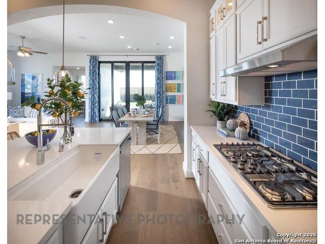 This ONE level brick home features wood floors, white and summer wheat cabinets, painted white brick fireplace, farmhouse sink, entertainment room and home office with a 3 car garage. Home under construction with an estimated late December completion.