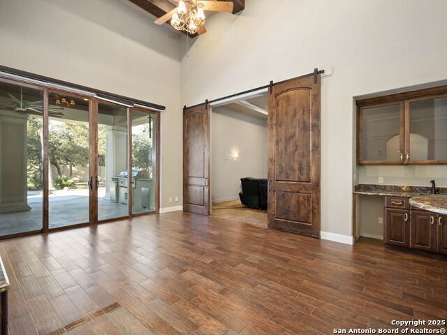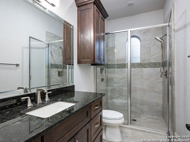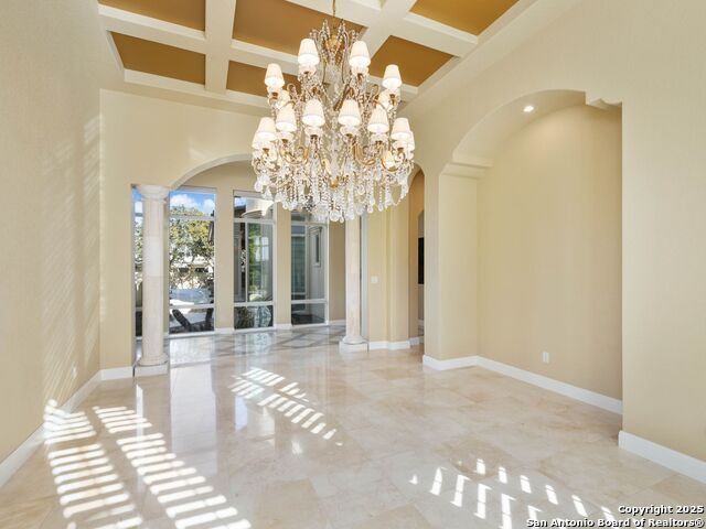Superior single-story meticulously built by Paul Allen Custom Homes within Huntington at Shavano Park. Unsurpassed craftsmanship and materials are harmoniously combined to create stunning living spaces. Hand-selected with only the finest appointments throughout to include custom ceiling and architectural details throughout. The chef's kitchen is complete with double oversized marble islands with professional-grade stainless steel appliances opening to the family room with high ceilings.The master suite boasts a luxurious spa-like bath and a large walk-in closet with extensive custom cabinetry/built-ins. Impeccable craftsmanship prevails, with five spacious guest bedrooms, all with en-suite bathrooms. An entertainer's delight with a resort-style setting found outdoors complete with a premier pool and spa with water feature, oversized covered patio with full outdoor kitchen.