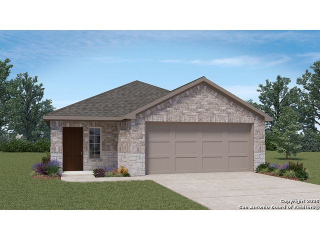 Step into The Brooke floor plan in Hacienda in San Antonio, TX, a one-story home featuring 3 bedrooms and two bathrooms. The Brooke also offers 2 classic front exteriors, a 2-car garage and 1396 square feet of comfortable living. The Brooke features an open concept layout that blends seamlessly to create the perfect everyday space. The gourmet kitchen separates the living area and dining room and includes quartz counter tops, stainless steel appliances, and shaker-style cabinets. The main bedroom features an attractive ensuite bathroom complete with a quartz vanity counter top, shaker style cabinets, separate water closet and a large walk-in shower. You'll have all the space you need to get ready in the morning with a large walk-in closet. You'll find quality carpet and closets in all of your secondary bedrooms, which can also be used as offices, play rooms or other bonus rooms. Head out the back door located off the dining room to find the rear covered patio (per plan) and full yard landscaping & irrigation. Additional features include sheet vinyl flooring in entry, living room, and all wet areas, quartz counter tops in all bathrooms and our HOME IS CONNECTED base package. Using one central hub that talks to all the devices in your home, you can control the lights, thermostat and locks, all from your cellular device.