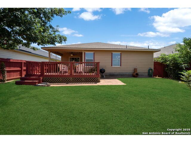 Step into this beautifully maintained 3-bedroom, 2-bath home nestled in the sought-after Hills of Shaenfield neighborhood. With 1,502 square feet of thoughtfully designed living space, this home offers the perfect blend of style, comfort, and location. / Interior Highlights: Open-concept living and dining area, ideal for entertaining. Gorgeous granite countertops in the kitchen with designer tiled backsplash. Spacious bedrooms with plenty of natural light. Freshly painted throughout, giving the home a bright, clean feel. / Exterior Features: 2-car garage with plenty of storage. Located on a greenbelt - enjoy peace and privacy with no neighbors behind you. Just one block from the neighborhood playground - great for families! / Upgrades You'll Love: New roof installed 2 years ago - worry-free living for years to come! / Prime Location: Close to top-rated schools, shopping centers, and dining options. / Easy access to major highways for a smooth commute. Whether you're a first-time homebuyer, downsizing, or looking for a move-in-ready gem, this home checks all the boxes! / Don't miss out - schedule your showing today!