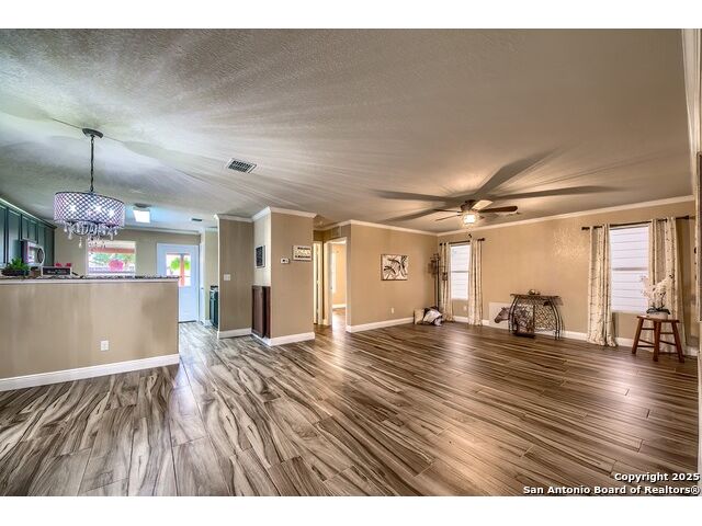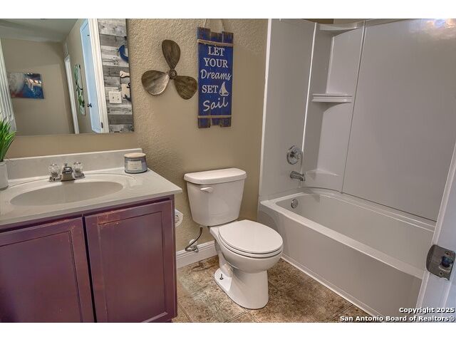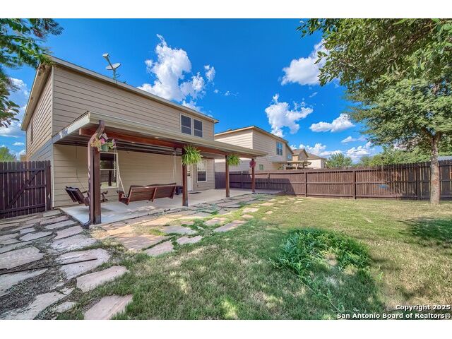 GLAMOUR & CHARM MEET CONVENIENCE! IF YOU ARE LOOKING FOR CHARACTER IN A LOW MAINTENANCE HOME -- THIS IS IT! The original owners not only added tons of HGTV-class but also meticulously maintained it, which resonates the moment you pull up. Located in popular Kensington Ranch in Selma, this two-story is better than move-in ready. Cross the threshold and be ushered into a warm, open floor plan glittering with crystal luxe light fixtures, 9-inch baseboards and wood-look tile flooring throughout the dining, living and kitchen. Anticipate many happy hours cooking in your gorgeously renovated kitchen with its modern cabinetry, fancy fixtures, high-end Azurite granite countertops, black composite undermount sink and stainless appliances. A bedroom down is ideal for a home office or for guests who don't want to manage the stairs -- a full bathroom down makes that possible. Enjoy the solid surface countertop, farmhouse light fixture and burnished bronze faucets updating the bath with tub/shower combo. Upstairs, appreciate the brand new carpet and all the natural light! A large loft is first to greet you with plenty of space for a game room or second living area -- complete with a nook perfect for school work or reading! Three spacious bedrooms up here include the split primary suite that is a true retreat. A nice, square shape helps give you options when placing furniture. Banks of windows with a view of the backyard usher in light and crown moulding dresses it up. The wood barn door leading to the luxurious primary full bath gives it that true farmhouse feel. Here find updated, high double vanity with marble countertop, undermount sinks, dark faucets, a generous walk-in shower with frameless glass door/surround plus gorgeous porcelain tile surround with glass tile accent and a chic striped ceiling. The walk-in closet offers so much room for clothing. The secondary bedrooms offer fantastic storage and share a third bathroom, like the rest of the home, updated so charmingly this time with a whimsical sea theme. Many request but rarely find an upstairs laundry room -- find one here with extra room and a custom pedestal shelf for front loading machines that offers extra under storage. Step outside to an upscale covered patio that runs the width of the home. Decoratively stained shiplap ceiling really dresses up the space that offers plenty of room for entertaining a large party or just enjoying the backyard privacy with a cup of joe. Easily add an outdoor kitchen here, hot tub, enclose it as a screened-in porch or even enclose it entirely to add square footage to the home with a Florida room. Since the owners fully permitted this addition with the city of Selma, it has the required moisture barrier and is ready to be even more than it is now. The orientation of this lovely yard is ideal for shade in the afternoons, which is so important in our Texas summers and the solar screens help keep electric bills incredibly low! Freshly painted and clean as a whistle, this home feels like a model. Add to this unbelievable package its location -- just off I-35 with easy commutes to military bases, downtown San Antonio & all the fun on the River in New Braunfels. The advantages add up even more when you consider this home sits in coveted Schertz/Cibolo/Universal City Independent School District in Guadalupe County where you can benefit from an extremely low 1.6 property tax rate! Run, don't walk to this one because you must see to believe it.