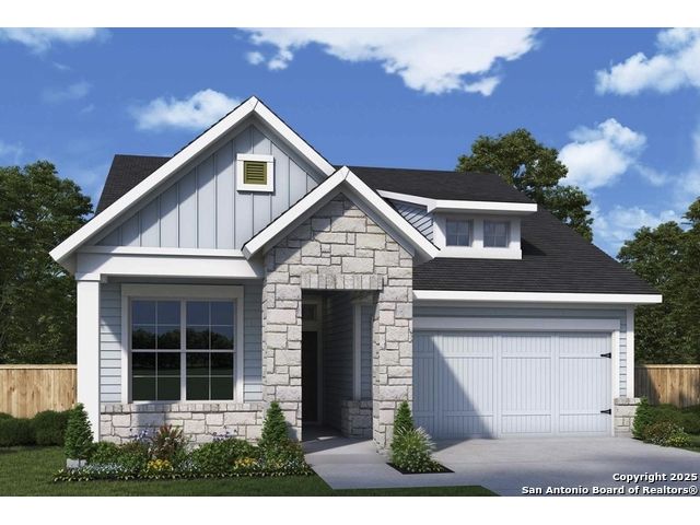 Bring your design inspirations to life in The Olmstead floor plan by David Weekley Homes. This home showcases a modern farmhouse design blended with Craftsman-inspired details, creating a warm yet refined curb appeal in The Crossvine. Your open concept living spaces present a distinguished first impression from the front door and offer superb comforts for quiet evenings together. The gourmet kitchen features a practical and stylish island surrounded by plenty of room for meal prep, holiday gatherings and intimate get toghers alike. Your Owner's Retreat is tucked away in the back of the home for your privacy and enjoyment. Featuring a spa-like en suite owner's bath with super shower, and expansive walk-in closet, you can begin and end each day in luxury. Two junior bedrooms situated at the front of the home provide ample room for family members to grow or out-of-town loved ones to feel welcomed. Step outside to the enhanced extended covered porch and a charming backyard--a perfect backdrop for relaxed evenings, weekend gatherings, and contemporary Texas living with Farm house warmth and modern simplicity.