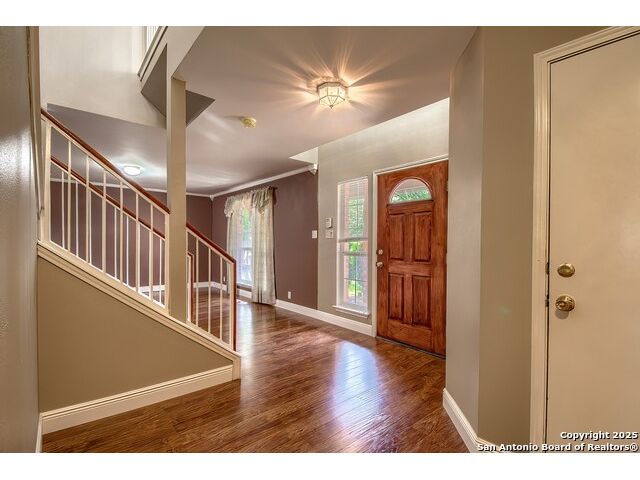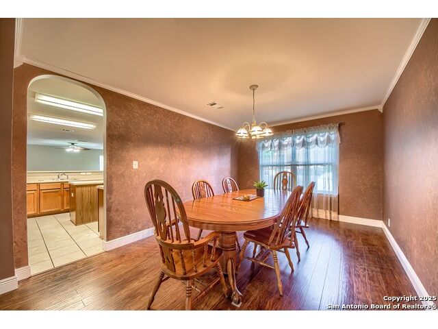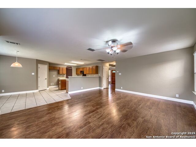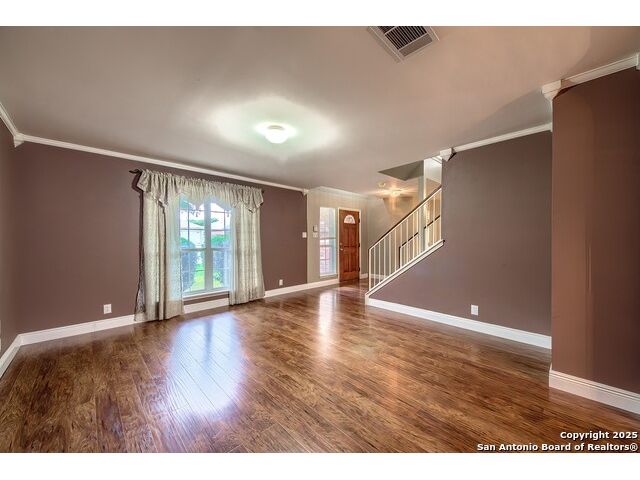 PRESTIGIOUS HOME IN PHEASANT RIDGE- Located in the beautiful and established community of Pheasant Ridge, this meticulously maintained 3-bedroom, 2.5-bath home showcases true pride of ownership and is COMPLETELY MOVE-IN READY! Step inside to find laminate hardwood floors throughout the common areas and ceramic tile in the kitchen, complemented by elegant crown molding in the living and dining rooms. The chef's kitchen is a culinary enthusiast's dream, featuring an eat-in bar, center island, ample counter space, walk-in pantry, and a cozy breakfast area. The spacious family room offers the perfect setting for gatherings and entertaining. A wrought iron staircase leads to a versatile loft/game room, while a stylish catwalk guides you to the expansive primary retreat. The ensuite bath boasts dual vanities, an UPGRADED WALK-IN SHOWER, and a CUSTOMIZED WALK-IN CLOSET with adjustable shelving for optimal organization. Secondary bedrooms also feature walk-in closets and ceiling fans, ensuring comfort and convenience for all. Enjoy the convenience of being just 10 MINUTES FROM BOTH I-35 AND LOOP 1604, with easy access to major shopping and entertainment. Stahl Elementary School and Madison High School are both within walking distance, making this home ideal for families seeking accessibility and top-rated education.