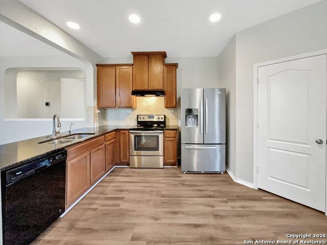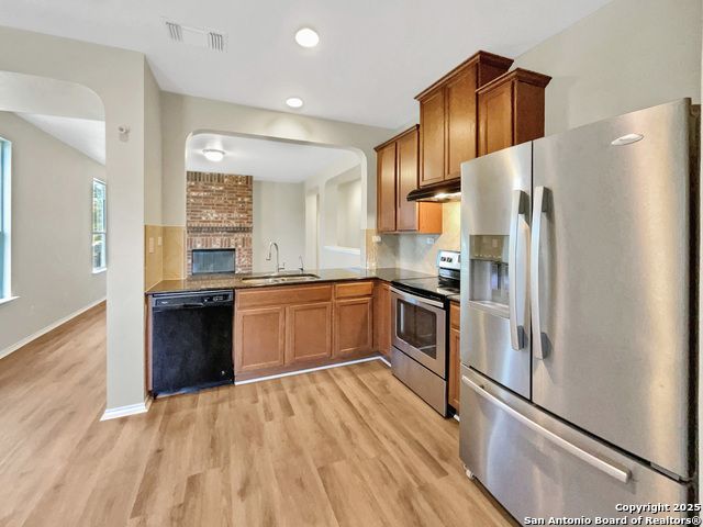 Welcome to this beautifully updated home. The neutral color paint scheme provides a calming atmosphere, complemented by the warmth of the fireplace. The kitchen is enhanced with an accent backsplash, adding a touch of elegance. The primary bathroom features double sinks for convenience. Enjoy the outdoors with a covered patio and fenced-in backyard, perfect for entertaining. The home boasts fresh interior and exterior paint, along with new flooring throughout, giving it a modern and clean feel. This property is a must-see for those seeking a fresh, stylish home. This home has been virtually staged to illustrate its potential.. Home comes with a 100-Day Home Warranty and a 7-Day Home Test Drive to move in 7 days early for free.