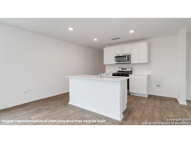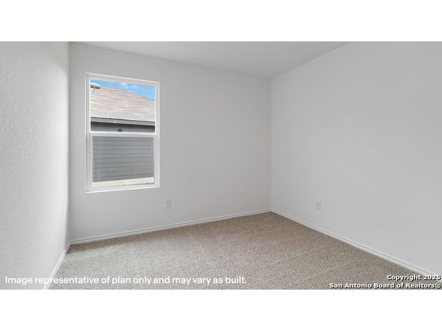 The Barton is a charming one-story home featured at Preserve at Medina in Von Ormy, TX. Featuring 2 classic front exteriors, this 3 bedroom, 2 bathroom home also offers 1281 square feet of living space and a 2-car garage. A front porch (per plan) welcomes you into the home and opens to the gourmet kitchen which includes quartz counter tops, quality cabinets, stainless steel appliances and an open concept floorplan with the kitchen flowing seamlessly into the dining room and living room. The main bedroom has an attractive ensuite bathroom that features a quartz vanity countertop and quality cabinetry. Enjoy additional storage with a spacious walk-in closet located off of the primary bathroom. Your secondary bedrooms all feature quality carpet flooring and a closet, and can be used as bedrooms, offices, work out spaces or other bonus rooms. The possibilities are endless with The Barton floor plan. Additional features include sheet vinyl flooring in entry, living room, and all wet areas, quartz counter tops in all bathrooms and HOME IS CONNECTED base package. Using one central hub that talks to all the devices in your home, you can control the lights, thermostat and locks, all from your cellular device.