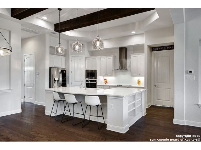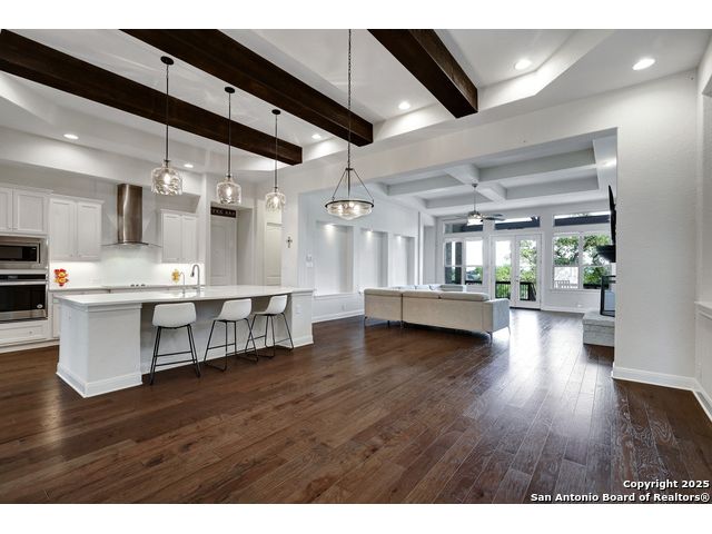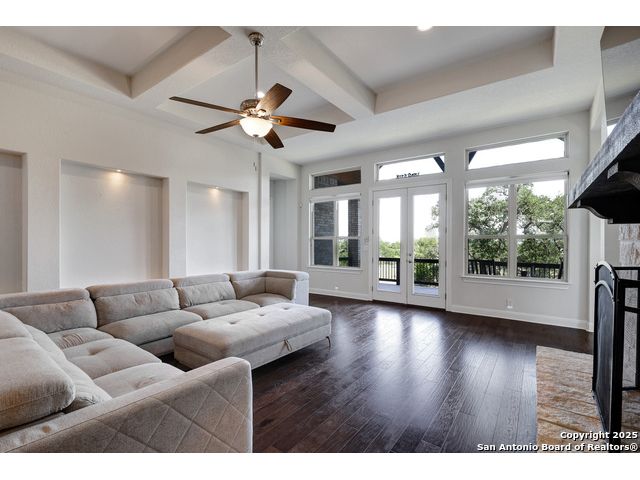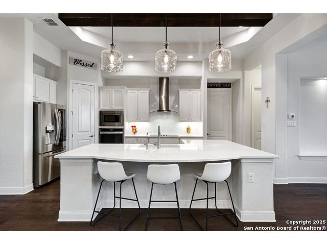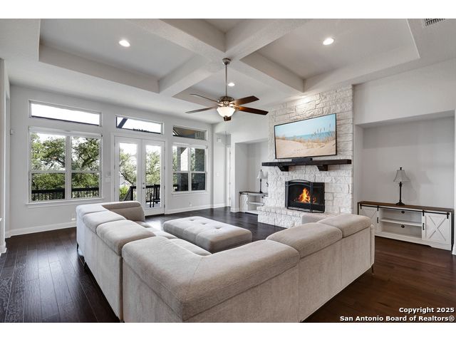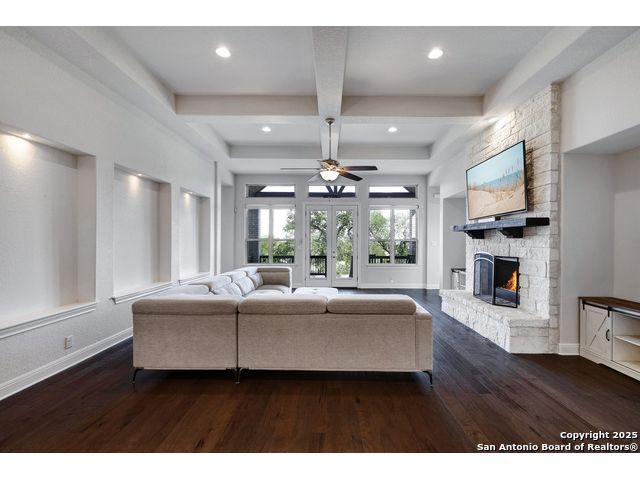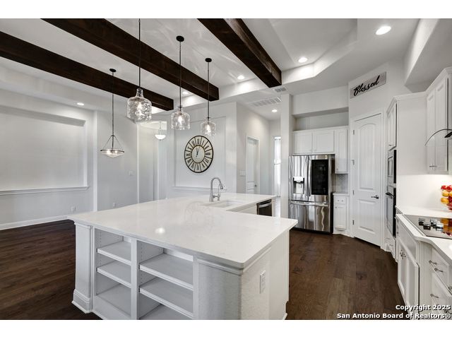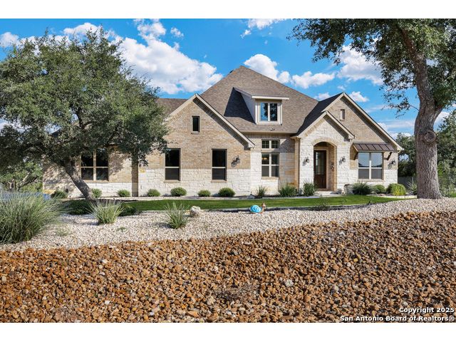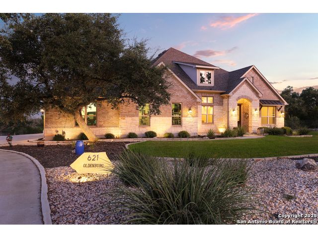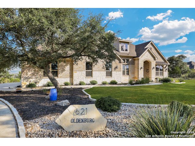 Luxury Hill Country Living at 621 Oldenburg | Copper Ridge, New Braunfels, TX 78132 Welcome to this beautifully designed 3,028 sq ft one-story home nestled in the highly sought-after manned-gated community of Copper Ridge. This 3-bedroom, 2.5-bath residence with a private study blends upscale finishes with everyday comfort. From the moment you walk in, you'll love the warm cedar-wrapped beams, the floor-to-ceiling stone fireplace with wood mantel, and the open-concept layout. The heart of the home is the gourmet kitchen featuring a large white quartz island, stainless steel appliances, a sleek glass/stainless steel vent hood, and a reverse osmosis system. The spacious primary suite boasts a luxurious walk-in shower with three rain shower heads featuring built-in lighting. The home also includes a water softener, oversized laundry room with additional pantry/storage space, and three custom lighted niches for added designer appeal. Enjoy the convenience of an oversized 3-car tandem garage-perfect for vehicles, storage, or a workshop-and holiday soffit lighting that makes decorating a breeze. Additional features: Hardwood Floors Private study/home office Professional landscape lighting Beautifully landscaped yard with full irrigation Quiet interior street location Copper Ridge offers unmatched community amenities including 24-hour gated security, a resort-style pool, pavilion, tennis and basketball courts, and walking trails. Move-in ready and loaded with upgrades-this home truly has it all. Schedule your private tour today!