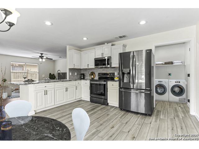 Save $525/Month! 4.875% Interest Rate + ALL Closing Costs Paid - $18,500 in Savings! Corner-Lot Gem with Premium Upgrades - This one-of-a-kind 4-bedroom, 2-bathroom home is ready to welcome your family! With nearly 1,600 sq ft of beautifully renovated living space, this isn't a flip-it's a personal home that was loved and thoughtfully updated with premium finishes throughout. Step inside to an open-concept layout where the large kitchen island becomes the heart of the home. Enjoy custom, top-of-the-line cabinetry, sleek quartz countertops, a gorgeous backsplash, and hardwood floors that add warmth and style. The full tile bathrooms feature glass walk-in showers and LED mirrors for a touch of luxury. No detail was overlooked-interior & exterior paint, new roof, upgraded closets, and more-making this home truly move-in ready. Outside, the corner lot offers abundant parking- park multiple cars in the driveway plus easy street parking for guests. The stained concrete driveway, two storage buildings, and fully fenced yard add even more convenience for busy families. Perfectly located just off Culebra, you're 1 minute from HEB & CVS, 5 minutes to I-10, and 5 minutes to Woodlawn Lake, Park & Pool-plus an easy commute to anywhere in the city. If you've been searching for a renovated, spacious, and stylish family home with upgrades you can see and quality you can feel, this is the one! It's going to WOW you and your family!