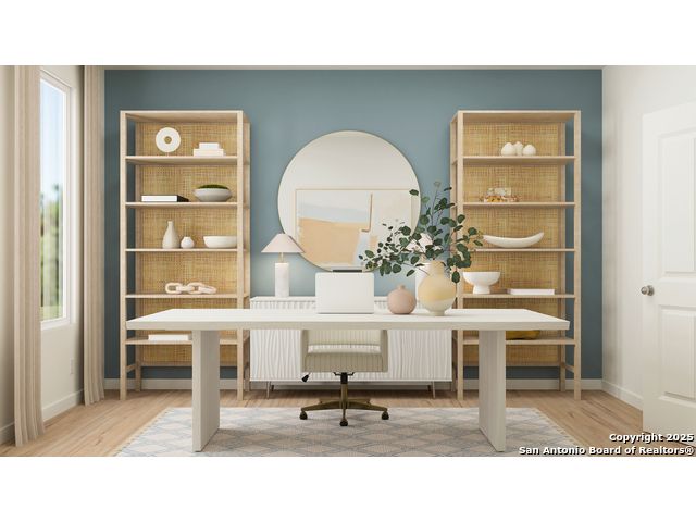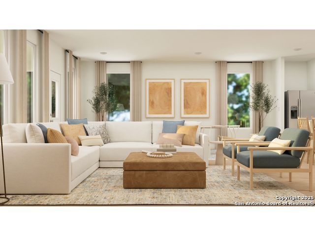 The Santana - This new single-story home offers a modern and low-maintenance design. Three secondary bedrooms are located near the front of the home near an inviting and spacious open-concept layout that blends the kitchen, living and dining areas. A nearby covered patio provides year-round outdoor entertaining. A convenient flex space is tucked away to the side of the home, while a luxurious owner's suite offers access to a full bathroom and walk-in closet. Prices and features may vary and are subject to change. Photos are for illustrative purposes only.