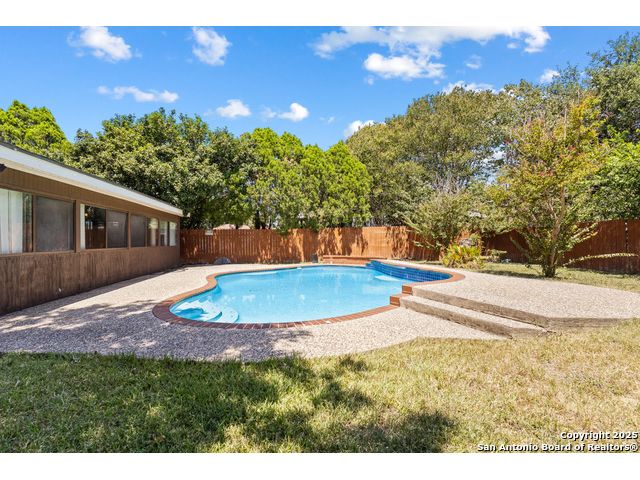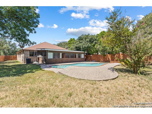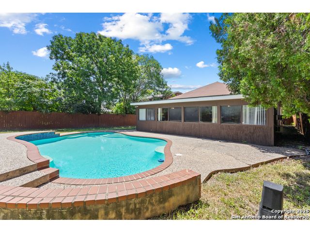 Step inside to experience an inviting open concept home, featuring two distinct living areas and two dining spaces. The open floor plan is ideal for gatherings and thoughtfully designed to maximize both relaxation and entertainment. The exterior is equally impressive, boasting an enclosed patio area that opens to a private backyard oasis. Imagine relaxing or entertaining by your very own pool, perfect for warm Texas days and evening get-togethers. The two-car garage adds convenience and storage, making this property as practical as it is appealing. This 4-bedroom home offering approximately 2,187 square feet of living area awaits your personal touch. Don't miss the opportunity to make this your home!