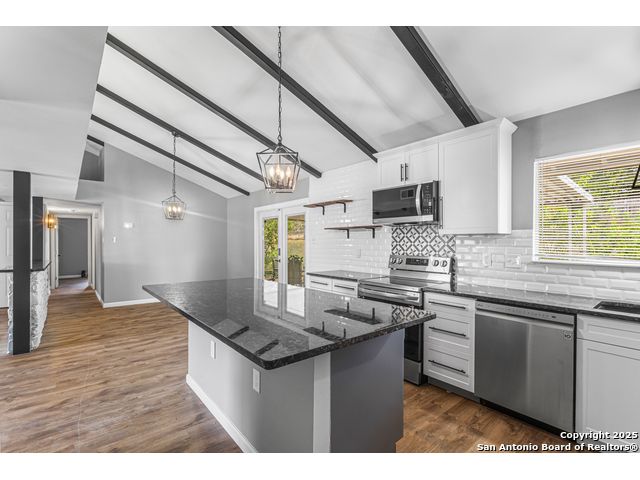 This 4-bedroom, 2-bath home in Valley High North offers plenty of space and thoughtful updates. Inside, you'll find upgraded kitchen features, refreshed bathrooms, and updated flooring throughout. The functional layout includes a comfortable living area, a dining space, and a two-car garage for convenient parking and storage. Out back, a large yard with a covered patio provides room for gatherings, pets, or a garden. Located near Lackland AFB, Loop 410, shopping centers, schools, and neighborhood parks, this home offers easy access to daily needs and local amenities.