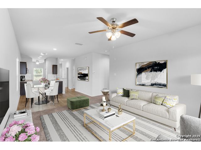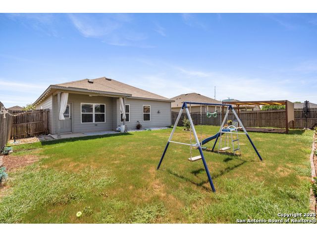 Experience the appeal of this beautifully designed one-story, perfectly situated in Converse, Texas. The kitchen overlooks the generous family room, creating an ideal layout for entertaining and everyday living. An isolated primary suite offers privacy, while three bedrooms provide plenty of room for family and guests. Step outside to a covered back porch with a custom pergola, extending your living space outdoors with both shade and style-perfect for morning coffee, evening gatherings, or relaxing weekends