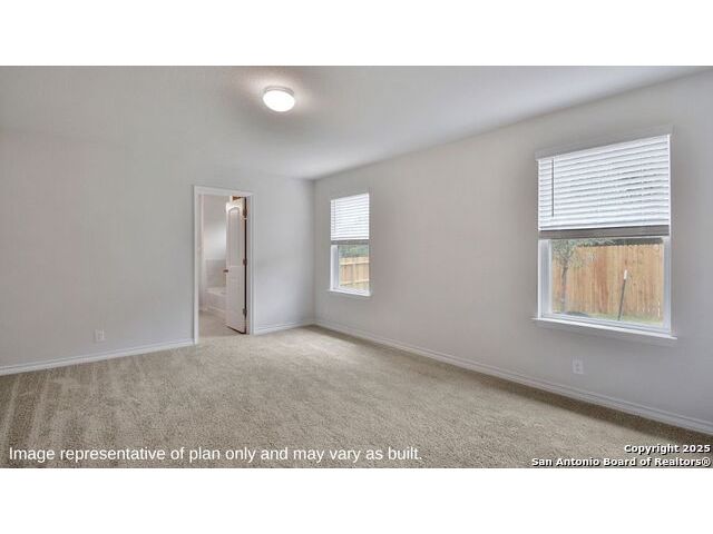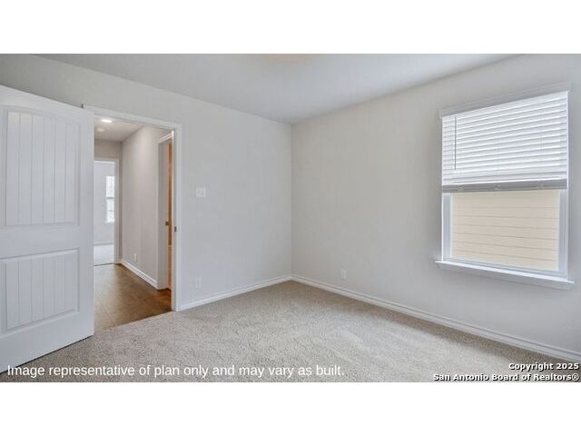 Welcome to The Knight, our largest single-story home offered at Steele Creek in Cibolo, TX. Featuring 3 classic front exterior, 4 bedrooms, 2 bathrooms, 2-car garage and 1901 square feet of living space, this floor plan is sure to turn heads. Spacious, comfortable living greets you at the door with a long foyer leading to a decorative wall nook and a grand, open concept living room, kitchen and dining area. The kitchen is complete with beautiful quartz countertops, stainless steel appliances, classic white subway tile backsplash, and an oversized kitchen island with a deep single basin sink. Your blended living room and dining area feature luxury hard surface flooring and plenty of windows, creating a light and bright space for living and entertaining. The private main bedroom is located at the back of the home and features a large, relaxing ensuite bathroom complete with a separate tub and walk-in shower, dual vanities, a water closet, and spacious walk-in closet. All secondary bedrooms offer quality carpeted floors and a closet. These rooms are versatile! Use them as bedrooms, offices, work out rooms or other bonus spaces. Additional features include tall 9-foot ceilings, 2-inch faux wood blinds throughout the home, ceramic tile in the bathrooms and utility room, pre-plumb for water softener loop, and full yard landscaping and irrigation. You'll enjoy added security in your new home with our Home is Connected features. Using one central hub that talks to all the devices in your home, you can control the lights, thermostat and locks, all from your cellular device.