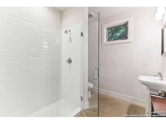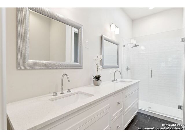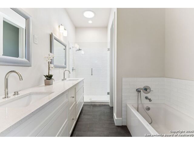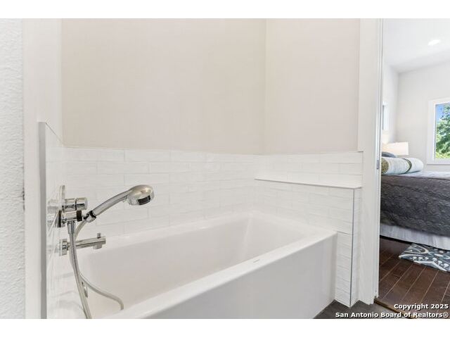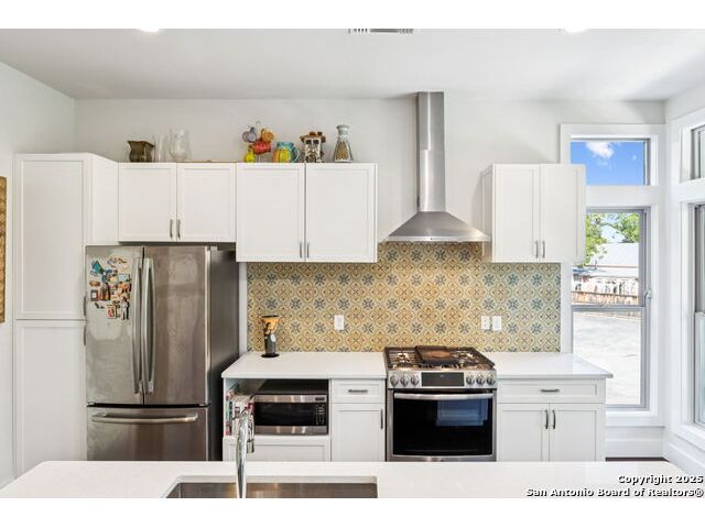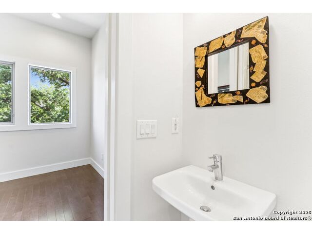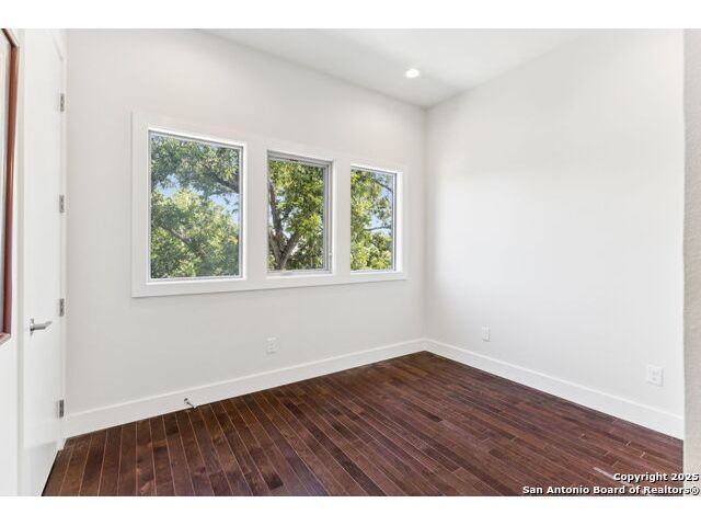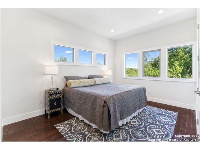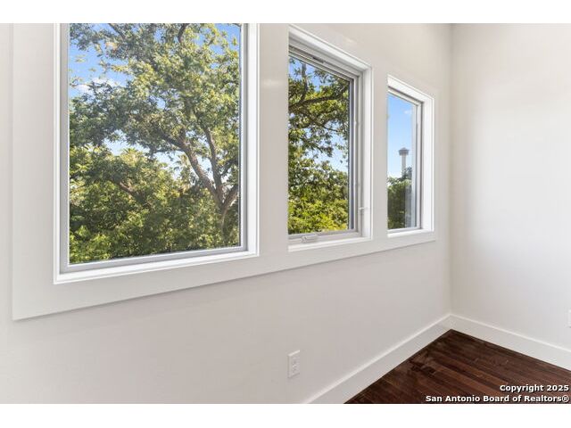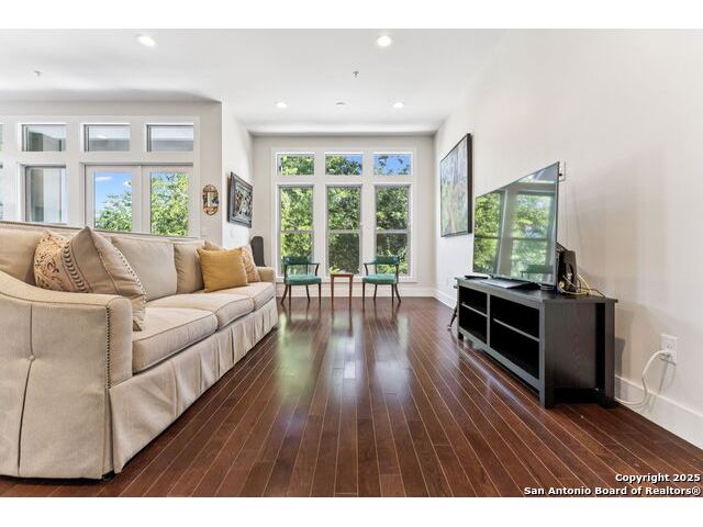 One of the very few townhouse options in King William, this north-facing private unit at the end of a common driveway is only the third unit available for resale since this original small SOJO infill community was built in 2018. The best of modern living in the middle of a historic neighborhood, just a block off the Southtown commercial corridors, this three-story unit was built for those who desire the best of urban living, a lock-n-leave option or downsizing to the next chapter. It's stocked full of options for an effortless lifestyle, including an integral elevator, tankless water heater, water softener, great insulation for comfort in heat or cold with low utility bills, and wired for security, and additional lighting options. The first-floor concrete floor office boasts two closets with a large full bath for optional use as a guest room and direct access to a single garage with extra storage area. The second floor, light-filled, tree-top view hosts an open floor concept, wood floor, living room, dining alcove and island-kitchen with generous storage and a guest half bath. A two-top table and chairs on the balcony is the perfect perch to watch downtown fireworks. The top floor offers a primary suite with two generous closets, double vanity with separate shower and tub. Nighttime views include the Pioneer Flour Mill tower and the Tower of the Americas. A second bedroom and private bath completes the floor along with a separate AC unit. Located a short walk from the San Antonio River, South Alamo restaurants, the new Rapid Green transit line to connect to the airport, and all that downtown has to offer, this unit offers everything you need to forget about managing a home, and instead, living life to the fullest.