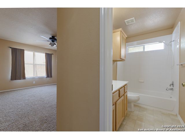 Buyers got cold feet and decided to keep renting vs. buying. Situated in the gated community of Provincia Villas, this two-story home offers an abundance of space with a layout designed for everyday comfort. Set in a secluded corner location away from the main road, this home also includes a two-car garage and is the largest two-bedroom model in the subdivision! Upstairs is devoted entirely to bedrooms, each one impressively sized. The master suite is generously proportioned, with enough room for a sitting area, home office, or nursery. It also features a spacious bathroom and a large walk-in closet. The secondary bedroom is exceptionally large, big enough for two king beds plus furniture, and comes with its own walk-in closet and full bath, making it ideal for family, guests, or shared living. Downstairs, you'll find a welcoming breakfast nook and a versatile dining area for gatherings. Step outside to a covered patio, perfect for enjoying morning coffee or relaxing in the shade after a long day. The kitchen includes a refrigerator, and the owned water softener is an added benefit. All of this in a location just minutes from the Medical Center, UTSA, The Rim, and IH-10, offering comfort, convenience, and plenty of room to make your own!