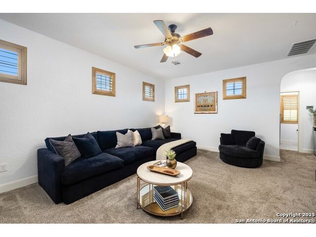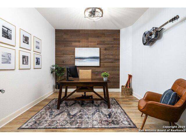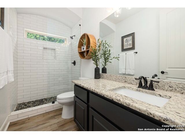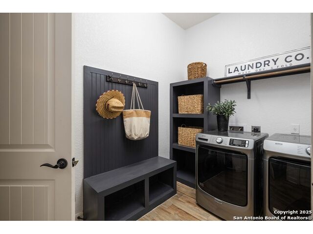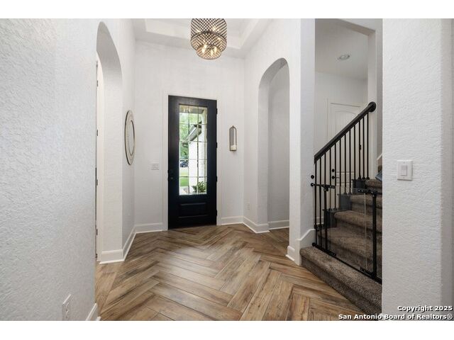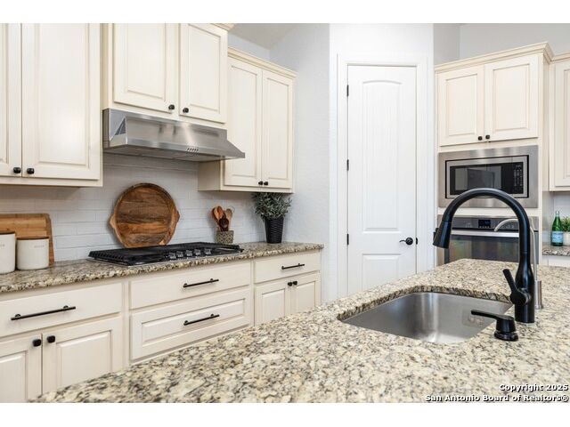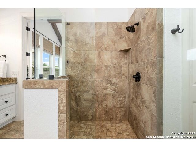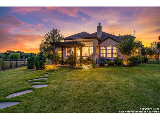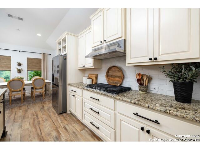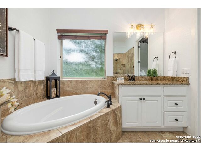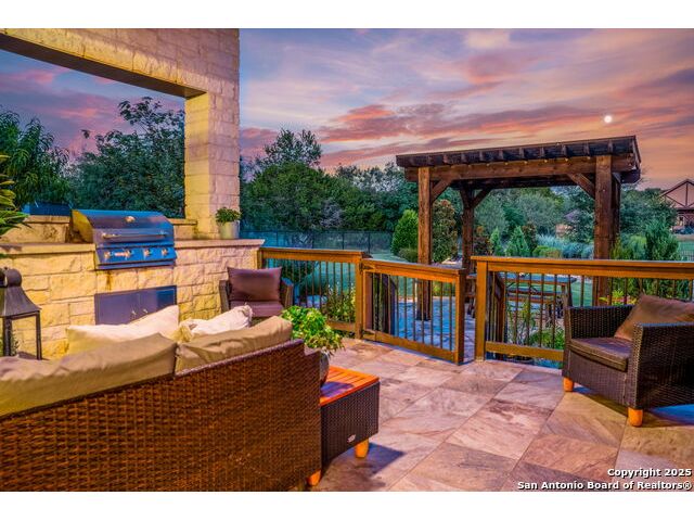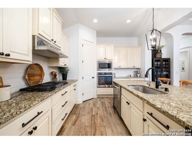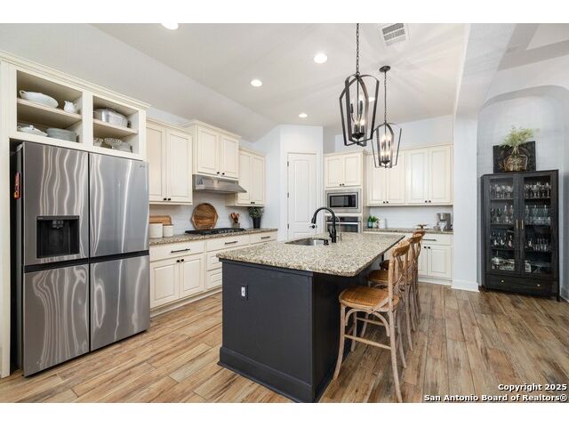 Tucked into a quiet corner of the prestigious Havenwood at Hunter's Crossing, this exceptional home offers a rare blend of space, comfort, and thoughtful design - all just minutes from Gruene, the Guadalupe River, and everything New Braunfels has to offer. Set on a generous 1+ acre corner lot in one of the area's most sought-after gated communities, it's the perfect balance of Hill Country privacy and convenience. Inside, the heart of the home is a spacious kitchen designed to impress. With a large center island, stainless appliances, gas cooking, and a stunning brick backsplash. A walk-in pantry adds everyday convenience, while the layout flows easily into the dining area - surrounded by windows and bathed in natural light. The living room features high coffered ceilings and a cozy gas fireplace. Throughout the downstairs, wood-look tile flooring adds warmth and durability, including a bold herringbone entry that sets the tone the moment you walk in. Fresh paint and updated lighting throughout the home bring a modern, clean feel. The primary suite is a private retreat, with beamed ceilings and stunning backyard views that make every morning feel like a getaway. Three additional bedrooms and two more full bathrooms are thoughtfully arranged on the main floor, offering flexibility and comfort for family or guests. A separate home office provides a polished and productive workspace, while a large bonus room with its own half bath is ideal for a media room, playroom, or second living area. Step outside to enjoy the covered patio with a built-in grill, newly added pergola, spa, and custom stonework creating a peaceful, private backyard. If you've been searching for a home that offers timeless style, smart updates, and room to grow - all within a secure, beautifully maintained Hill Country community - this is one you don't want to miss.