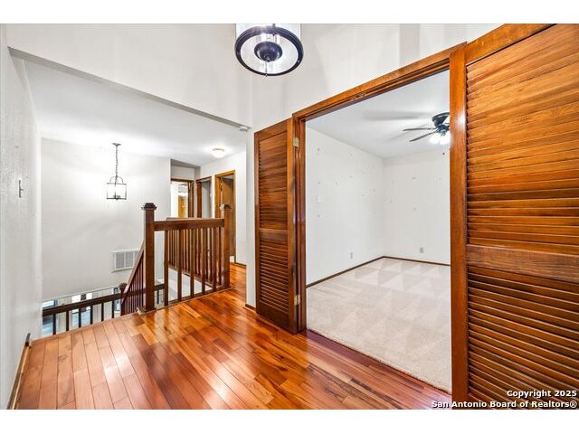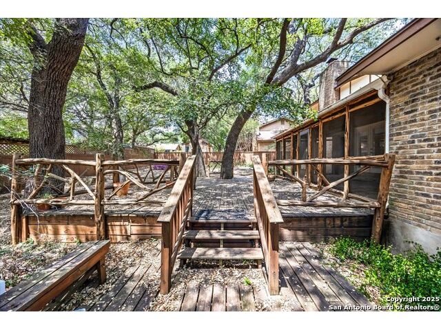 Welcome to Your Private Oasis in a Premier San Antonio Neighborhood! Step into the serenity of this idyllic neighborhood, where majestic oak trees line the streets and an exceptional amenity center brings the community together. Nestled on an oversized, oak-studded lot, this well maintained 3 or 4 bedroom home offers generous space, timeless elegance, and abundant storage throughout. From the moment you enter the graceful foyer, you're greeted by gleaming wood floors and a stunning staircase that sets the tone for the refined interior. The formal dining room invites intimate gatherings and flows effortlessly into a spacious kitchen and breakfast nook-ideal for both casual meals and entertaining. The warm and inviting living room, anchored by a cozy gas fireplace, offers a perfect place to relax with views of the lush backyard. Retreat to the expansive Owner's Suite, a true sanctuary featuring a double vanity, an oversized sunken shower, and an impressively large two-sided walk-in closet. The generously sized laundry room includes a convenient utility sink and leads to the oversized garage, complete with two additional storage rooms and a water softener. Step through the living room into a charming screened-in porch, then out onto a wooden deck that overlooks your private, oak-filled backyard. With a gazebo, mature landscaping, and a high privacy fence, the outdoor space is perfect for relaxing evenings or lively weekend get-togethers. Upstairs, you'll find two spacious bedrooms and a large flex room-ideal as a home office, playroom, or fourth bedroom. Recent updates include: appliances, windows, HVAC system, water heater, countertops, plumbing fixtures, and more-providing peace of mind and modern convenience. Located in a prime area just minutes from top-tier shopping, dining, major highways, medical facilities, and the San Antonio Airport. Situated right across the street from the prestigious Silverhorn Golf Course. Zoned to highly acclaimed NEISD schools, with the elementary school conveniently located within the neighborhood. Residents enjoy outstanding community amenities including a clubhouse, swim and tennis teams, and a vibrant social calendar. This is more than a home-it's a lifestyle!