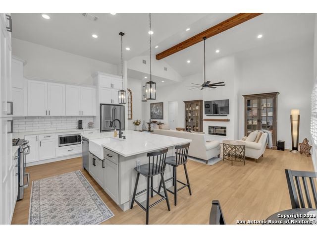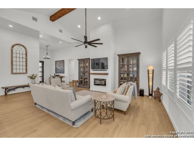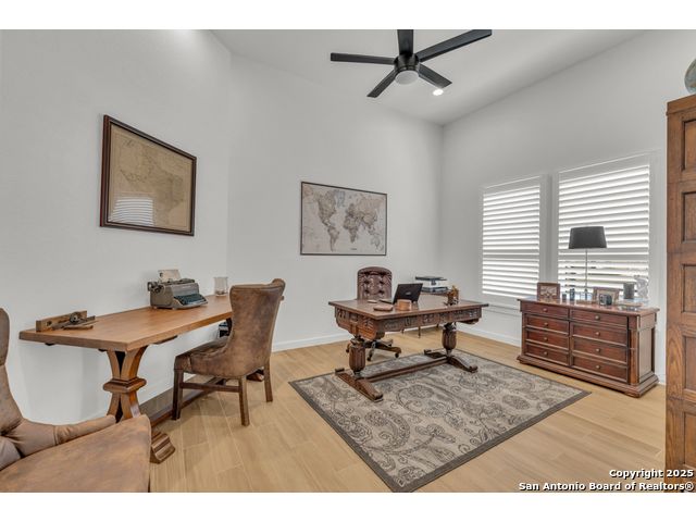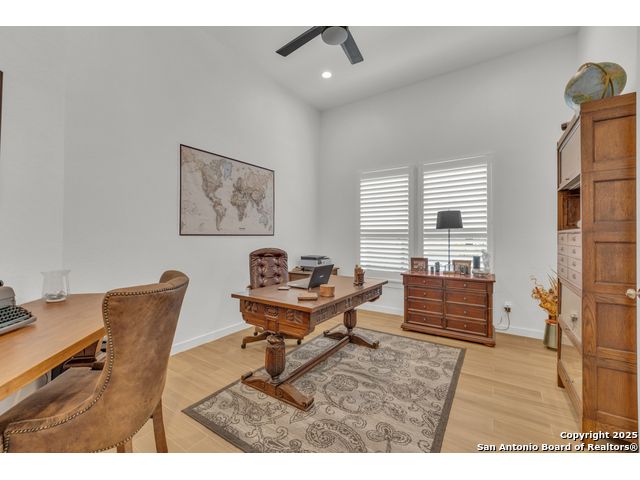 Welcome to this stunning custom-built single-story home offering 3 bedrooms, 2.5 bathrooms, an office, and 2,394 sq ft of beautifully designed living space. The open floor plan features an eat-in kitchen, dining area, cozy fireplace, and thoughtful upgrades throughout. The luxurious primary suite includes a spa-like bath with built-ins, a large shower, soaking tub, generous closet, and direct laundry room access. Enjoy the outdoors with a spacious covered patio, lush landscaping, a fully fenced yard, and an oversized garage. Located in a prestigious gated community, you'll have access to world-class amenities-tennis courts, fitness center, outdoor gym, pro shop, pool, cafe, and bar.