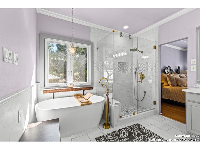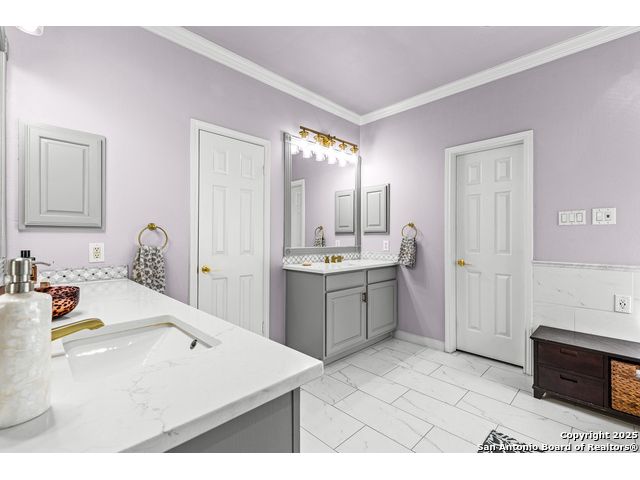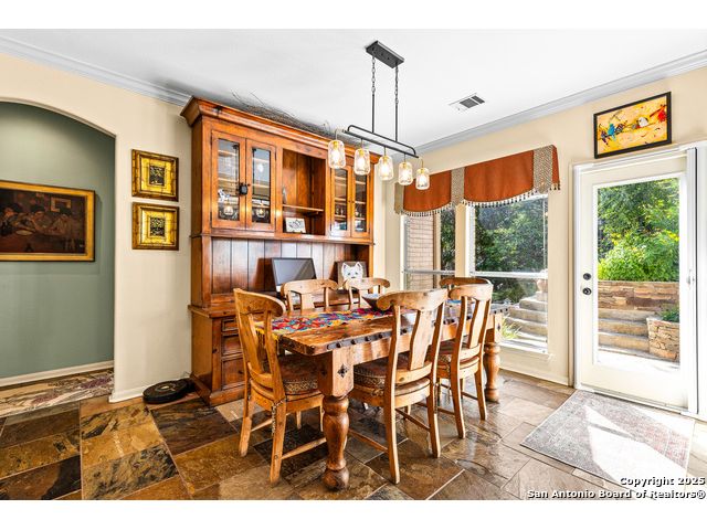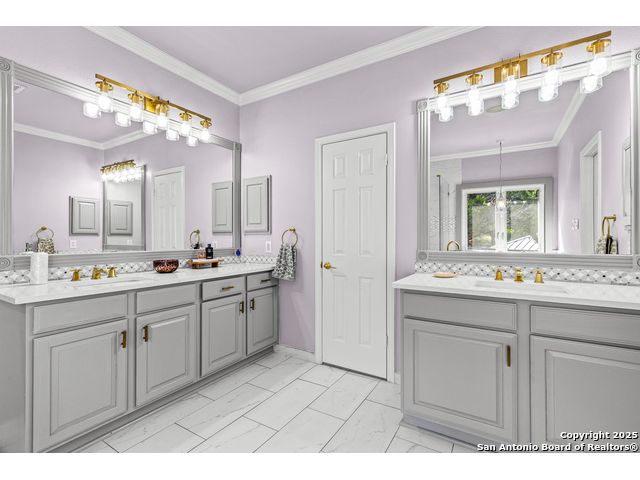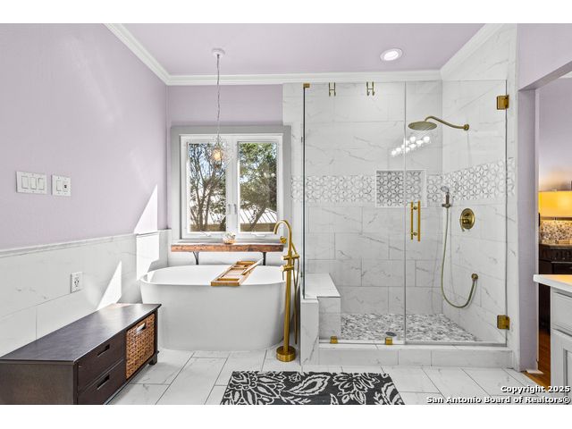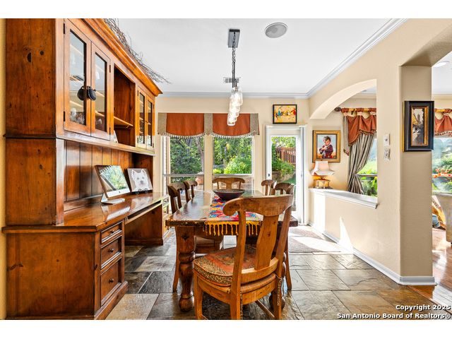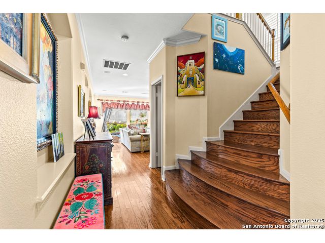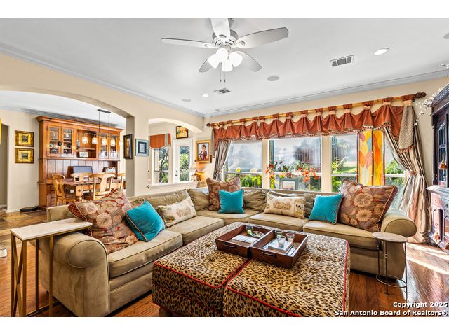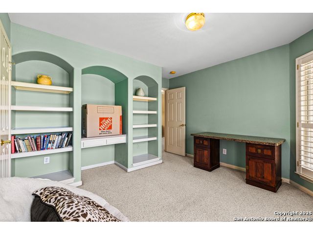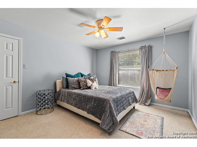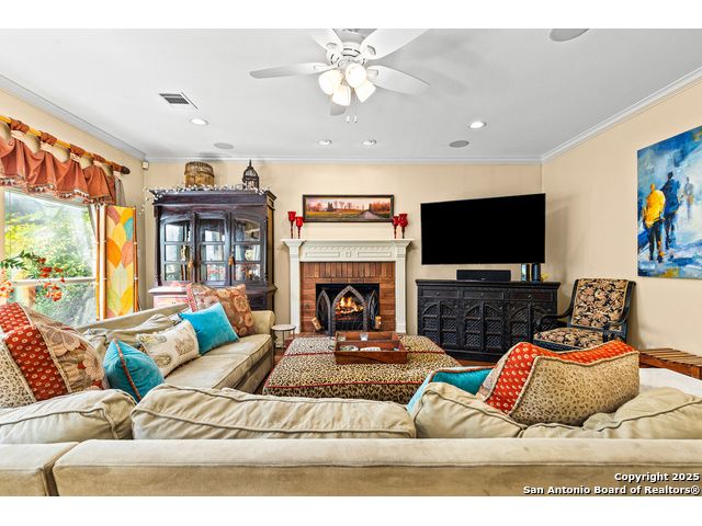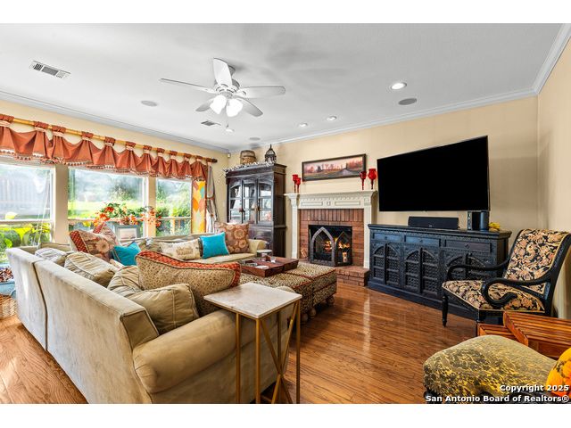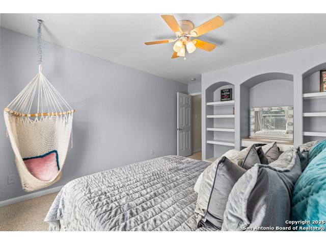 Imagine pulling into Legend Hollow, a private, gated enclave nestled within the prestigious Crownridge community. This is where you'll find a stunning two-story home offering the perfect blend of luxury, comfort, and convenience. This spacious residence boasts 4 bedrooms and 2.5 bathrooms, all situated on a generous half-acre lot that backs directly onto a serene greenbelt. This means privacy, beautiful views, and no rear neighbors - a true premium in this area! And here's the kicker: this exceptional home is perfectly positioned on a quiet cul-de-sac, offering minimal traffic. Thoughtful Layout and Features! As you step inside, you'll immediately appreciate the thoughtful floor plan. The primary bedroom is conveniently located on the first level, providing a private retreat. The renovated primary bathroom is a spa-like sanctuary, featuring a separate tub perfect for unwinding after a long day, alongside a spacious walk-in shower and dual vanities. The main level also offers a variety of living spaces designed for both entertaining and everyday life. You'll find a dedicated dining room, perfect for formal gatherings, a comfortable living room, and a cozy family room where everyone can relax. Head upstairs, and you'll discover three additional spacious bedrooms, offering plenty of room for family or guests. Plus, there's a versatile loft area that can be used as a media room, a play area, or a secondary living space. And for all your organizational needs, you'll love the extra storage room. The heart of this home, the kitchen, has been beautifully renovated, featuring modern appliances, elegant countertops, and ample cabinet space, a wine refrigerator in the island making it a joy for any home chef. Now, let's talk about the backyard. It's truly a private oasis, backing onto that gorgeous greenbelt. This expansive outdoor space is private and serene, making it absolutely perfect for barbecuing with friends and family, or simply enjoying a quiet morning coffee amidst nature. It's your personal slice of tranquility. Beyond the home itself, the location is unbeatable. You'll enjoy easy access to major highways, making your commute a breeze. Plus, you're just a short drive from world-class shopping, dining, and entertainment options at La Cantera, ensuring you're always close to everything San Antonio has to offer. This home truly offers an exceptional lifestyle in a prime location, especially with the added tranquility of being on a cul-de-sac and that incredible backyard.