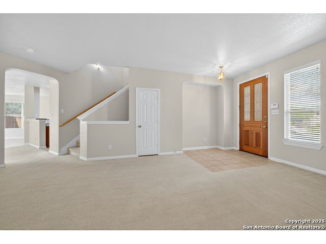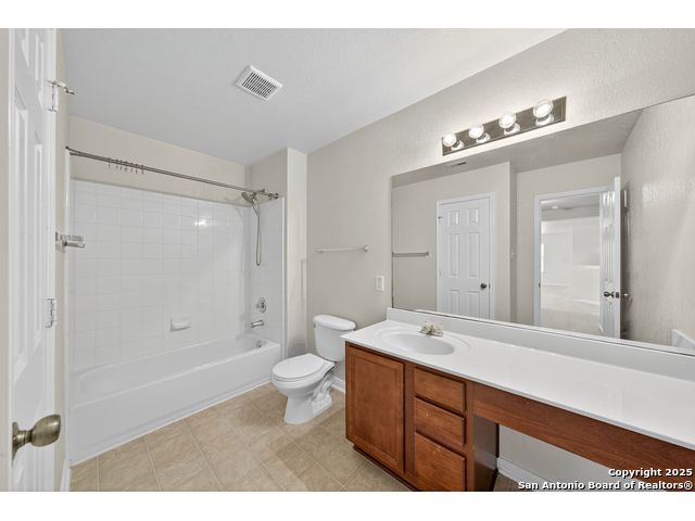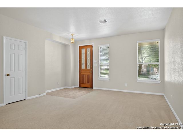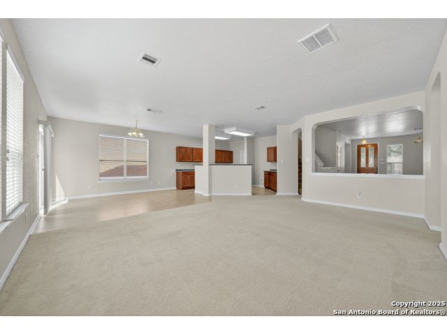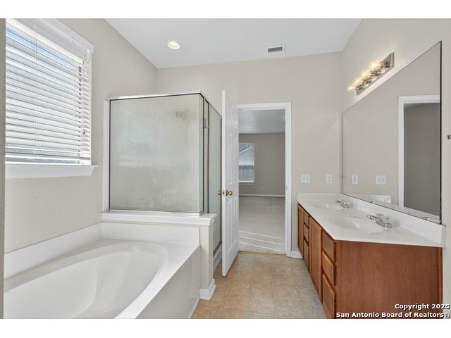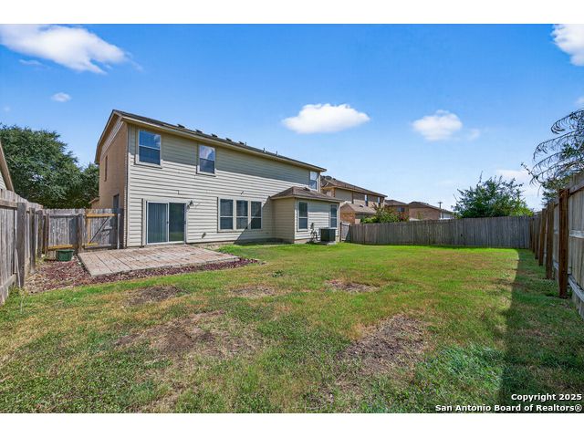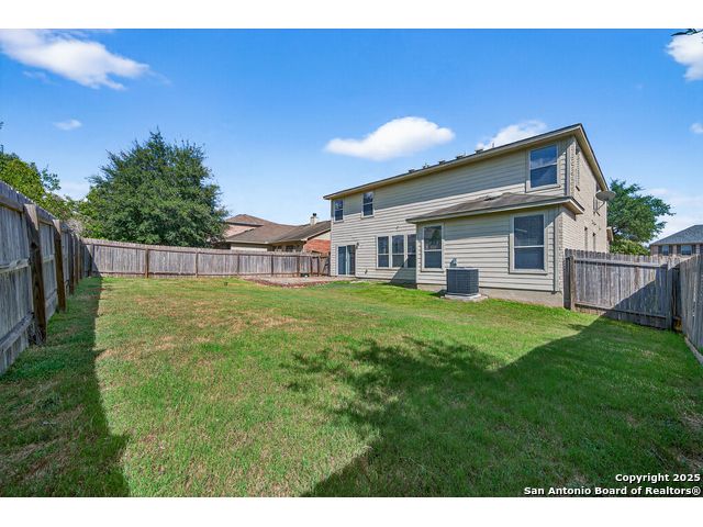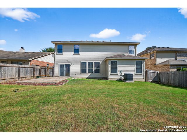 This impressive 4-bedroom, 2.5-bathroom home is located in the highly sought-after Springtree subdivision in the heart of Cibolo, offering over 3,500 square feet of living space. The entryway leads into the first of two living areas, which flows seamlessly into the dining space-perfect for entertaining. Beyond, you'll find a second living area, a bright kitchen, and a breakfast nook. The kitchen features ample cabinetry and matching black appliances. The spacious primary suite is conveniently located on the main floor and includes a luxurious en-suite bathroom with double vanities, a large garden tub, a separate shower, and a generous walk-in closet. Upstairs, the remaining bedrooms and a sizable game room provide plenty of space for family or guests. Outside, a masonry patio creates an ideal setting for weekend BBQs and outdoor gatherings. With easy access to Interstate 35, Loop 1604, and a short drive to Randolph AFB, this home is ready for its new owners to add their personal touch and is a pleasure to show.