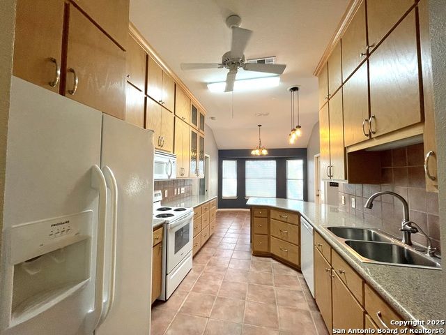 Lovely garden home in Oakwood Estates on the hill in New Braunfels! Two spacious bedrooms with walk in closets, tile floors throughout, solid surface countertops and solid wood custom cabinetry in the kitchen. A sunny Florida room and a generous storage shed in the back. Giant oak trees sprawl the property giving shade and natural beauty. Walk up stairs to the attic storage area. This home has a water softener and refrigerator included. A short jaunt down the hill to Landa Park, close to shopping, restaurants and medical facilities. Come take a tour and fall in love with New Braunfels living!