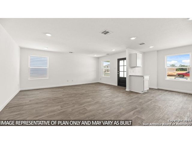 The Blake, a new construction home in the sought-after Sonora community in San Antonio, TX, offers 816 square feet of well-designed living space. This charming home features 2 bedrooms and 1 bathroom, perfect for those seeking a cozy yet functional layout. The Blake provides two all-siding exterior options, both constructed with durable James Hardie products, ensuring long-lasting beauty and low maintenance. Instead of a traditional garage, the home features a spacious driveway, offering convenient parking space. The open concept layout of the home creates a seamless flow between the living room, dining area, and kitchen, making it ideal for everyday living and entertaining. The kitchen is equipped with stunning quartz countertops, stainless steel appliances, and shaker-style cabinets, providing a modern and efficient space for cooking and socializing. The main bedroom offers a comfortable retreat with quality carpet flooring, while the second bedroom provides additional space for guests or a home office. The bathroom features a single vanity with a quartz countertop and a combined shower and bathtub, providing both functionality and a touch of luxury. Additional features of the Blake include hard surface flooring in the living room, kitchen, and all wet areas for easy maintenance. Patios are also included per plan, adding extra outdoor space. With its thoughtful design and quality craftsmanship, The Blake is the perfect choice for anyone looking for a modern, low-maintenance home in San Antonio, TX.
