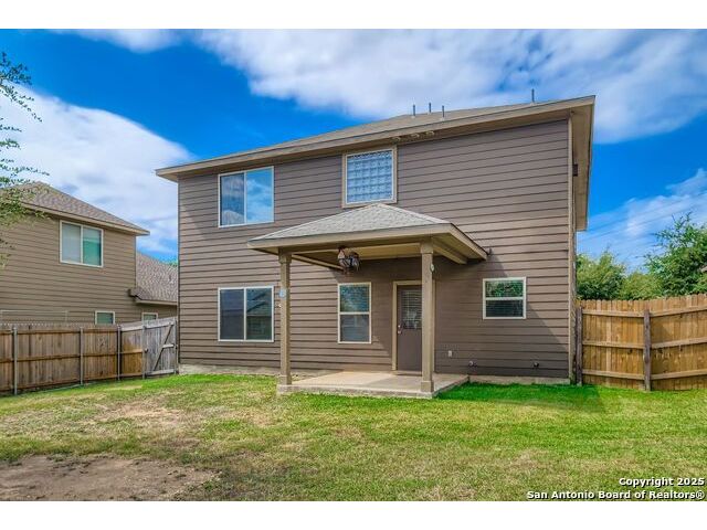 This beautiful two story home features the latest in energy saving features such as foam insulation in the attic and blown cellulose in the exterior walls. Along with a Trane brand 15 SEER HVAC system to keep cool in the summer and warm in the winter. Other great features include , 42" upper kitchen cabinets, and 2" faux wood blinds. Property is located in the Lakeview subdivision. The light, airy and open floor plan leads you to the LARGE kitchen on the left side of the downstairs area that has plenty of countertop and cabinet space, recessed lighting. Great sized rooms, bathrooms and closets. The backyard is an entertainers dream! Covered slab patio with ceiling fan, privacy wood fencing, and a ton of room for outdoor activities, This home is conveniently located nearby Hwy 151, Sea World, shopping, schools, Lackland AFB , Loop 410