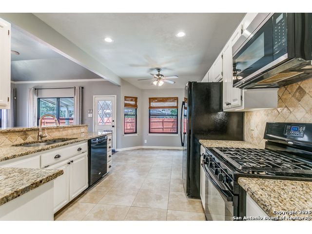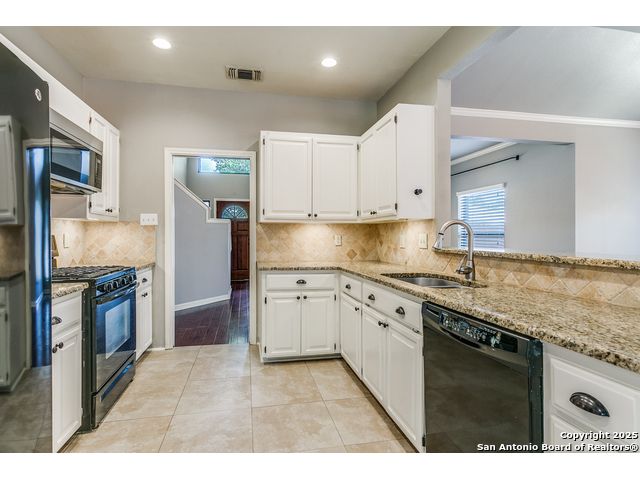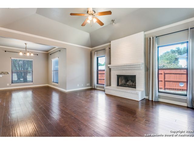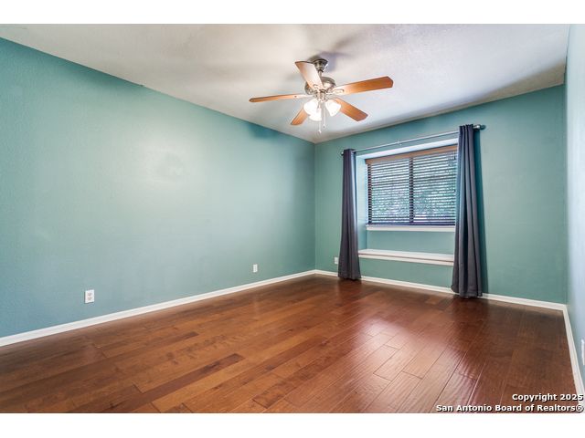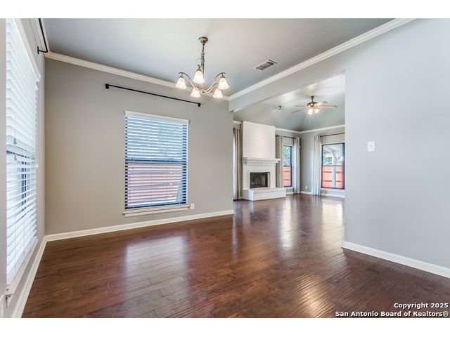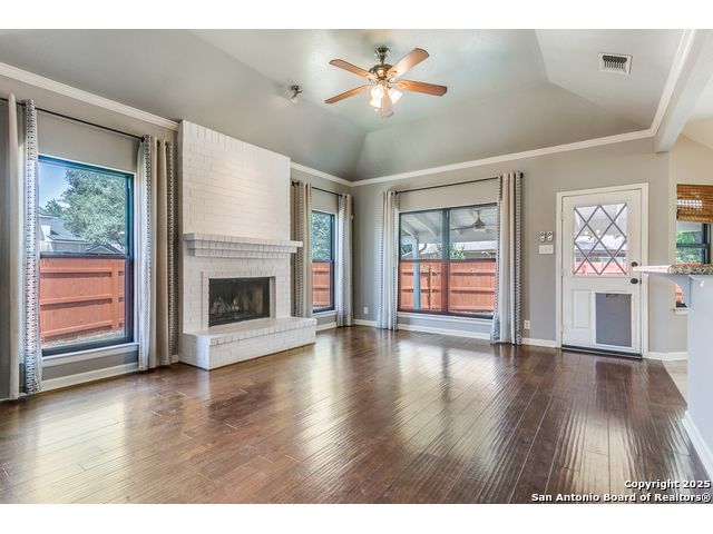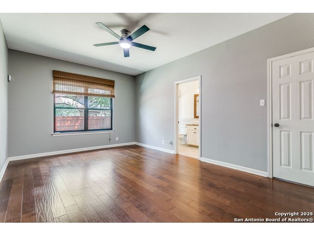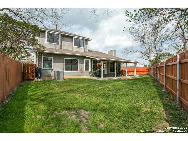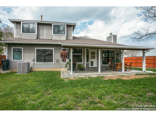 This spacious home is situated in the quiet, gated Towne Lake neighborhood with easy access to Salado Creek Greenway. This spacious home provides ample living space with high ceilings and open-concept light-filled main level. Warm wood floors through much of the home. The kitchen has a breakfast nook and opens to the living room with brick- surround fireplace. The second dining area is adjacent to the living space. Primary bedroom on the lower level with en-suite bath and walk-in closet. 3 more bedrooms upstairs share a hall bathroom. Great outdoor space with covered patio, privacy fence, and sprinkler system.