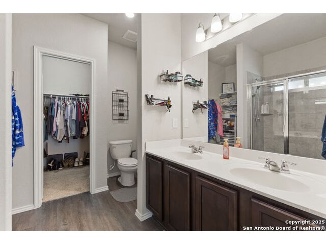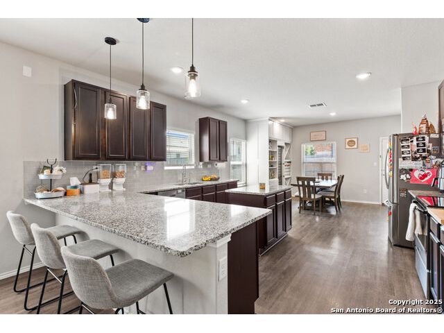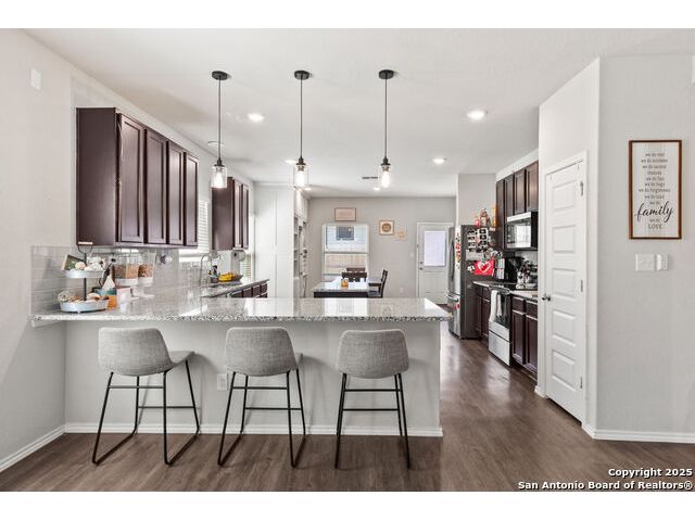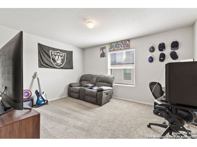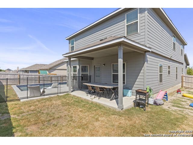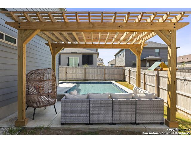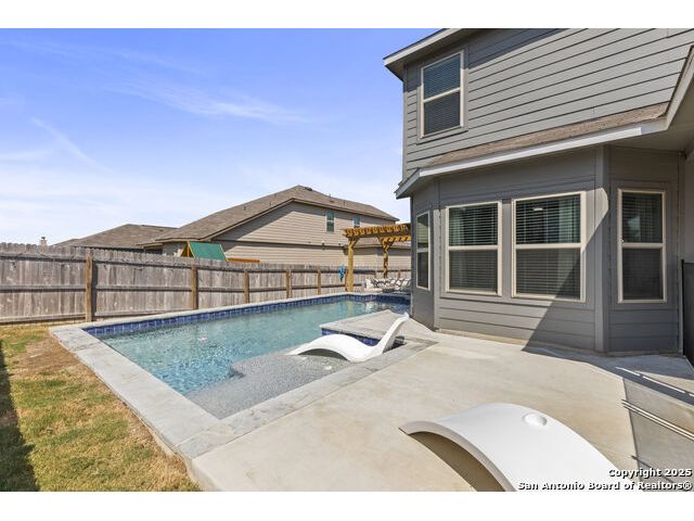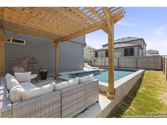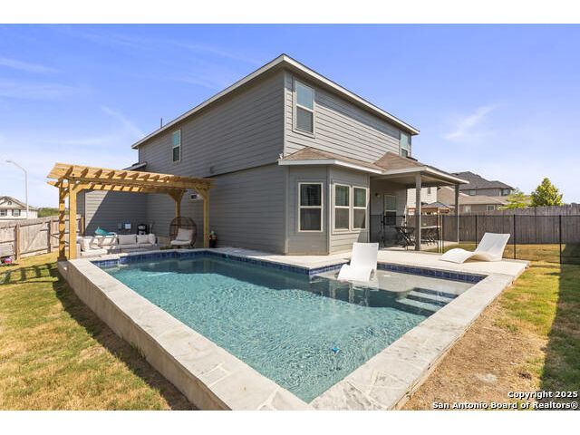 OPEN HOUSE SAT 13TH 2-4 PM. This stunning open-concept home is designed for both everyday living and unforgettable gatherings. At the heart of of the home, a chef's kitchen with custom wine cabinets and an oversized beverage fridge flows seamlessly into the dining area perfect for entertaining. The primary suite, located conveniently downstairs features a beautiful bay window with views of the sparkling inground 2024 SALTWATER pool. Upstairs discover a spacious loft, a dedicated media room and three stylish bedrooms with a designer accent wall plus a versatile office/bedroom flex space ideal for working from home, guests or hobbies. Step outside to your personal oasis: a saltwater pool under FULL WARRANTY, complete with lounging pergola for year-round enjoyment. Whether hosting a summer pool party or enjoying a quiet evening retreat, this backyard was made for memories.