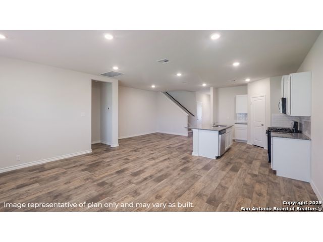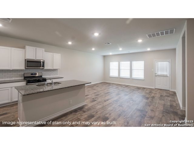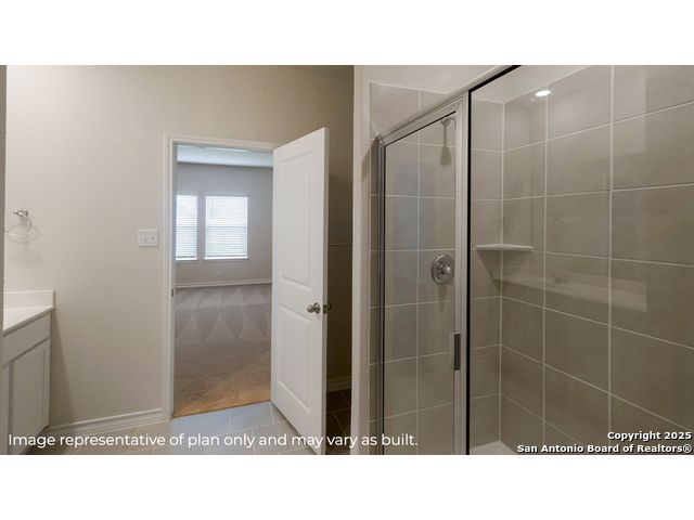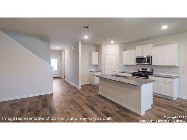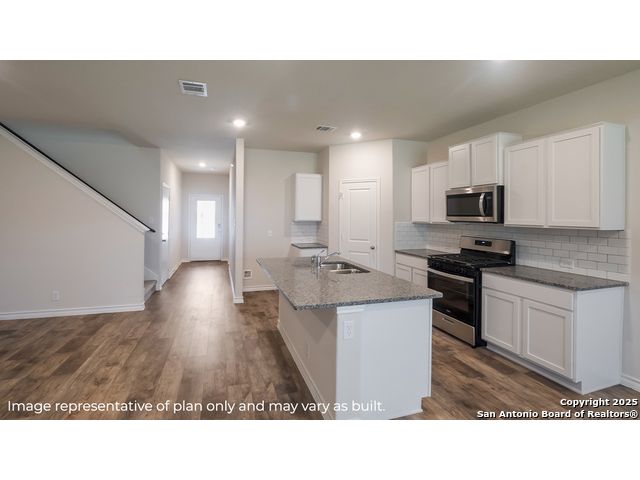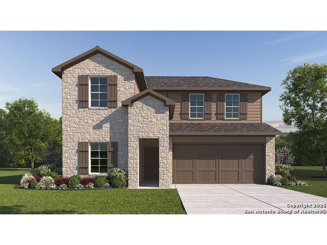 Tour The Mitchell floor plan at Brookstone Creek in San Antonio, TX. This home delivers the space, comfort and flexibility your lifestyle demands - offering 2257 square feet, four bedrooms and 3 full bathrooms across a smart and functional two-story layout. Your new home comes equipped with a full landscaping and irrigation package, ensuring both beauty and curb appeal. The heart of the home is the open-concept kitchen, dining and living room area where you'll enjoy gathering with family and friends. The kitchen showcases stainless steel appliances, quartz countertops, flat panel cabinetry, an elegant kitchen island with a deep farmhouse-style sink and white subway tile backsplash for a timeless finish. Your primary bedroom suite is located on the main level and tucked away toward the back of the home for privacy. It includes a spacious, tiled walk-in shower, dual vanity sinks and a walk-in closet. A secondary bedroom and full bath on the first floor offer an ideal setup for guests, a nursery or multi-generational living. Upstairs, two additional bedrooms are situated alongside a versatile game room, perfect for move nights, study space or a secondary living area. Every bedroom features quality carpet flooring, large windows and ample closet space. This home includes our HOME IS CONNECTED base package. Using one central hub that talks to all the devices in your home, you can control the lights, thermostat and locks, all from your cellular device. Additional features include a covered patio (per plan), vinyl plank flooring throughout the main living areas, and a pre-plumbed water softener loop. Whether hosting guests downstairs or enjoying quiet time upstairs, The Mitchell floor plan offers dynamic spaces and modern finished - right here in beautiful Brookstone Creek.