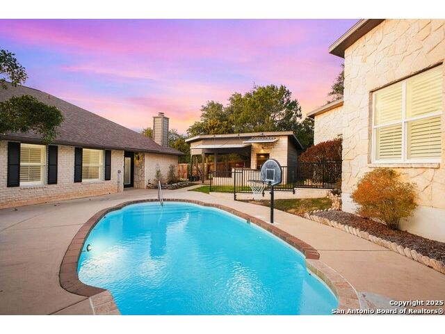 MOTIVATED SELLER! Rare opportunity in Timberwood Park-perfect for relocation, multi-generational living, or those seeking a private retreat with guest space. This single-story main home offers 3 bedrooms, 2 baths, and 1,867 sq ft of open living, plus a detached guest house (casita) with full kitchen, bed, and bath. Set on a .41-acre lot with mature trees and privacy, the property features an in-ground pool, multiple patios, and space for entertaining, gardening, or play. The granite kitchen with stainless appliances flows into light-filled living and dining areas, while the renovated primary suite offers backyard views and a spa-style bath. The casita is ideal for guests, extended family, or income potential. Located minutes from Stone Oak shopping, dining, and medical, with top-rated Comal ISD schools, Timberwood Park residents enjoy a private 30-acre park with stocked lake, walking trails, sports courts, playground, and clubhouse. Easy access to Hwy 281 OR Blanco Rd blends Hill Country serenity with city convenience-rare flexibility in one of the most desirable neighborhoods just outside the city! No city Taxes!