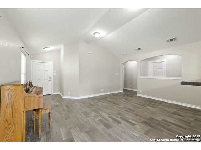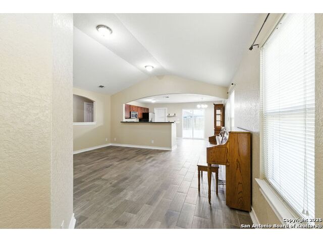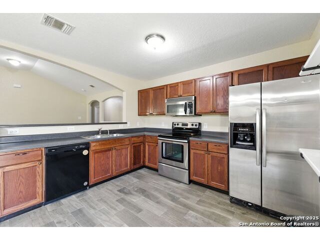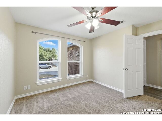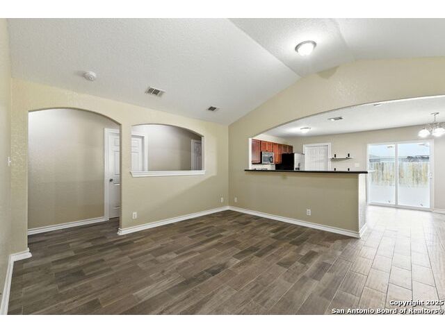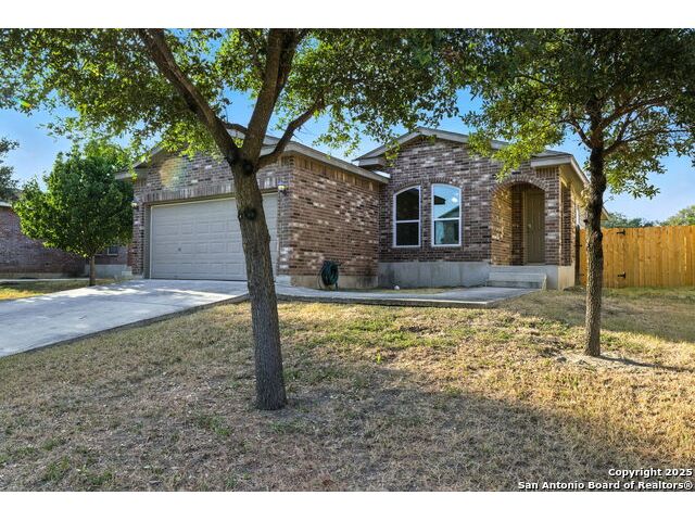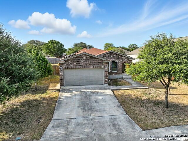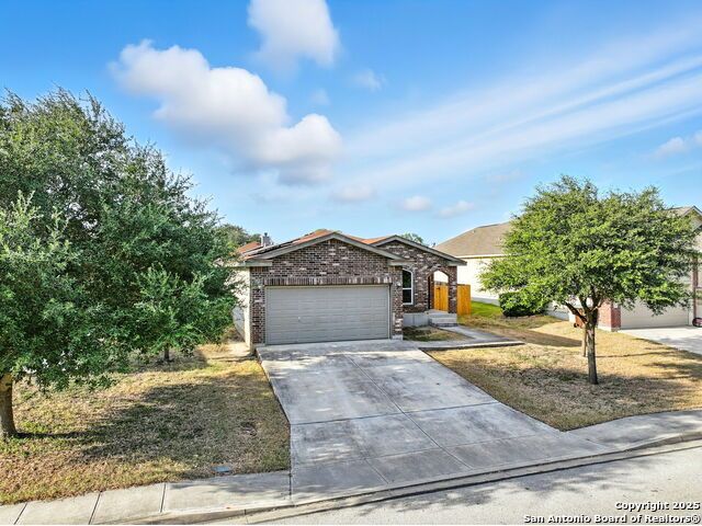 Wonderful neighborhood of Hummingbird Estates off Hwy 90 and Kriewald Rd with low HOA fees! Brick and siding 3 bedroom/2 full bath/2 car garage home with an open floorplan and great architectural features like vaulted ceilings, arches and rounded corners! Massive primary suite with an en-suite full bath with a tile tub surround. Open kitchen with a huge breakfast bar, a double oven and smooth cooktop. Well-organized laundry room/pantry just off the kitchen and easily accessible. Large backyard with patio slab and a privacy fence. Excellent price-point for an affordable home in a classic San Antonio neighborhood near schools, shopping and major highways for a smooth commute. Enjoy the tranquility of your surroundings while still being part of a vibrant and friendly community. Near Lackland, New Carpet, Vacant and Move-in Ready! ....Come see your new home!