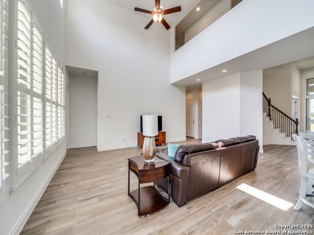 Over 4,000 square feet in this beautiful like-new 2-story home in scenic Hill Country. This gorgeous, bright 4 bedroom, 3 full and 1 half bath home is located in the master-planned community of Esperanza in Boerne, TX. The home features an open floor plan with high ceilings, chef's white kitchen with dual ovens and gas cooktop, primary luxury bathroom, dedicated study, formal dining room plus breakfast area with kitchen island, game room, media room, extended laundry room and so much more. No expense was spared in this luxury primary bathroom that features 2 separate closets, dual vanities, stunning walk-through shower with dual shower heads and an additional rain shower head plus free-standing tub. Lastly, this beauty has a huge yard on just under a quarter acre and no direct neighbors behind you. The master-planned community of Esperanza has a pool, kiddie pool zone and lazy river, gym, amenity center, park, walking and biking paths, dog park, outdoor movie nights area with food trucks events and so much more. Come experience Texas living at its finest!