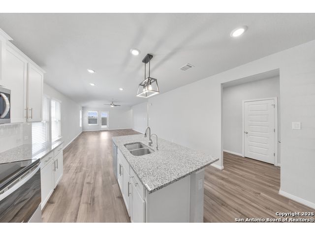 2.875 Interest Rate VA Assumable Loan!!! Charming 3-Bedroom Home with Study and Flex Room Near Creekside This beautifully maintained single-story home offers 3 bedrooms, 2 baths, plus a private study and a versatile flex room, providing plenty of space for work, play, or relaxation. With 2,001 square feet of living space, the open layout centers around a granite island kitchen that flows seamlessly into the main living and dining areas, perfect for everyday living and entertaining. The backyard is a private retreat, backing up to a greenbelt with no rear neighbors. A spacious composite deck and completely turfed back yard create a low-maintenance outdoor space that's ideal for relaxing or hosting gatherings. Adding to its curb appeal, the home features a permanent Jellyfish LED lighting system that allows you to customize the exterior lighting year-round. Located just minutes from Creekside, you'll enjoy easy access to endless shopping, dining, and entertainment options while still being tucked into a quaint desirable neighborhood. This home offers the perfect combination of convenience, comfort, and style in the heart of New Braunfels.