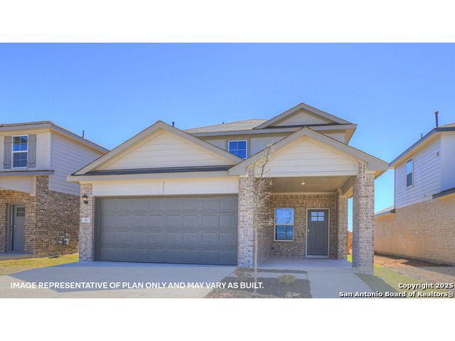 MOVE IN READY! EASY ACCESS TO I-35. The Nicole is one of our most popular floorplans available at Whisper South in San Marcos, Texas. This two-story home offers 4 bedrooms, 3 bathrooms, a gameroom, and 2 car garage all within 2,473 square feet of comfortable living space. Our homes in Whisper South feature three-sided masonry exteriors. Entering the home from the covered front porch, cross the foyer and find a short hallway to the downstairs secondary bedroom and a full bathroom. Passing the staircase, continue through the foyer to the heart of the home, the living area. The family room, dining area, and kitchen are open, making entertaining and everyday living a shareable experience for family and friends. The kitchen features an island with undermount sink, quartz countertops, a corner pantry closet, 36" upper cabinets, and stainless-steel appliances, including a gas range. Moving upstairs, you'll enter the gameroom, the center of the upstairs space. The oversized primary bedroom is tucked away from the gameroom. Stretch out and relax at the end of your day in this spacious and private ensuite. The primary bathroom features a walk-in shower, double vanity with marble counter tops, private toilet area with a door, and an enormous walk-in closet. This will be the closet of your dreams, spacious enough to add a dressing island or chaise lounge for a full luxurious experience. The additional upstairs bedrooms and bathroom are located opposite the primary bedroom. The bedrooms feature walk in closets with wood shelving. Both secondary bathrooms include a shower/tub combination. The utility room rounds out the upstairs space, making laundry chores a breeze. The Nicole includes vinyl flooring throughout the common areas of the home, and carpet in the bedrooms. All our new homes feature a covered back patio, full sod, irrigation system in the front and back yard, and a 6' privacy fence around the back yard. This home includes our America's Smart Home base package, which includes the Front Doorbell, Front Door Deadbolt Lock, Home Hub, Thermostat, and Deako Smart Switches