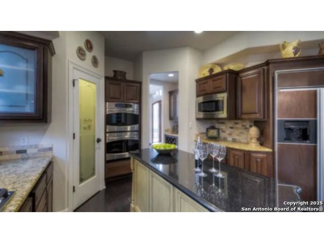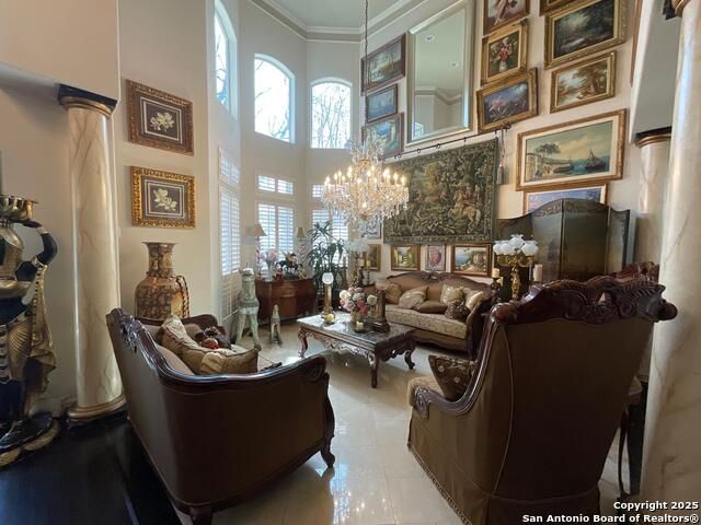 OWNER FINANCING at below-market interest rate AVAILABLE! Discover timeless elegance and modern comfort in this beautiful home located in The Cottages at The Dominion, San Antonio's premier gated and guarded community. With 3 bedrooms, 3 bathrooms, and 3,341 sq. ft., this residence offers an exceptional lifestyle of luxury, privacy, and convenience. Ideally positioned just moments from the serene neighborhood park and the main Dominion entrance, the home provides effortless access while maintaining a peaceful, tucked-away feel. Interior Highlights: Step inside to soaring ceilings, rich hardwood floors, and abundant natural light pouring through walls of windows. A custom fireplace anchors the formal living area, framed by refined architectural details including arched openings, decorative columns, and intricate crown molding. The chef's kitchen blends classic warmth with modern functionality-granite countertops, a large island with breakfast bar, stainless steel appliances, double ovens, and a gas cooktop set beneath a beautifully tiled archway. The adjacent formal dining room, illuminated by crystal chandeliers and plantation-shuttered windows, is perfect for both intimate meals and elegant entertaining. Primary Suite & Second Level: The main-level primary suite offers a private retreat with a spa-inspired bath featuring dual vanities, a soaking tub, and a separate shower. Upstairs, a sweeping curved staircase leads to a spacious loft-ideal for a media room, study, or secondary living area. Outdoor Living: A charming courtyard and a shaded back patio surrounded by mature oaks create inviting spaces for al fresco dining, relaxing mornings, or quiet evening gatherings. The home's stone-and-stucco exterior, arched entryway, and immaculate landscaping provide enduring curb appeal. Additional Features: * Three-car garage * Garage apartment / casita * Exceptional storage throughout * Access to world-class Dominion amenities: golf, tennis, fine dining, walking trails, and 24-hour guarded security. Experience refined living in one of San Antonio's most coveted communities-where elegance, comfort, and convenience combine in perfect harmony. With attractive owner financing available, this extraordinary property is now within your reach.