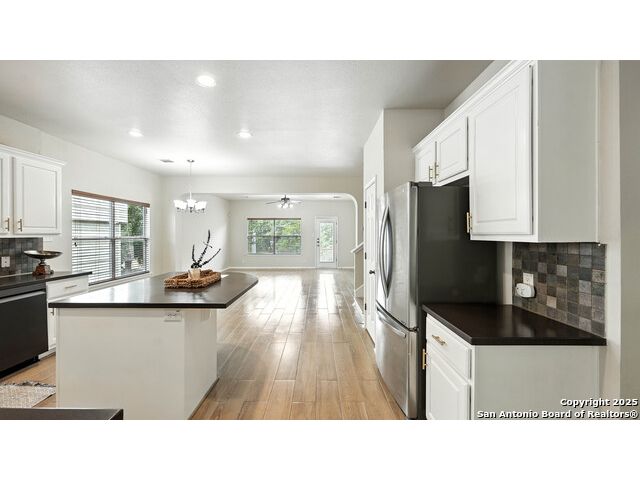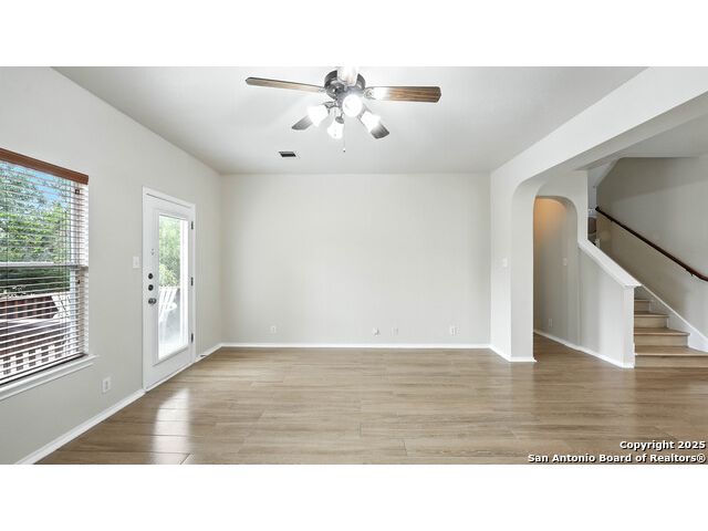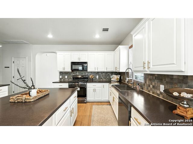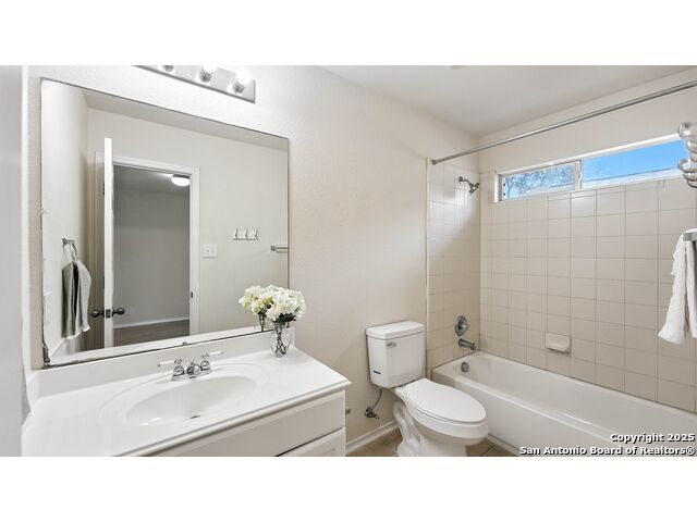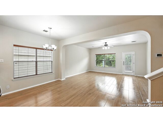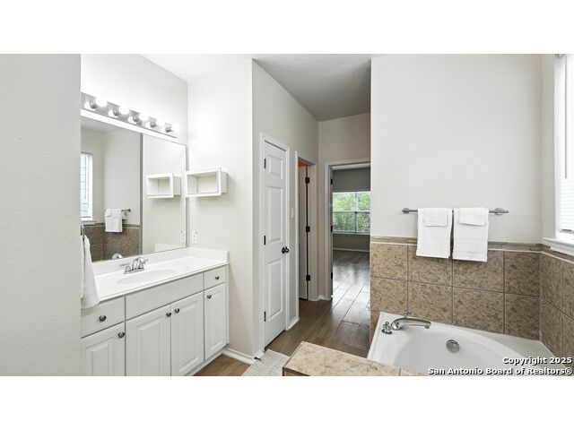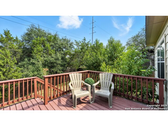 Located in the prestigious Majestic Oaks section of the gated and guarded Heights of Stone Oak, this 4-bedroom, 3.5-bath home offers 2,831 sq. ft. of stylish living space and access to incredible neighborhood amenities-including a pool pavilion, sports courts, jogging trails, and a playground. Property is located just minutes from shopping, groceries, hospitals and resturaunts and quick access to both hwy 281 and loop 1604. Inside, the main level features two dining areas, two living areas, a well-appointed kitchen, and a spacious primary suite. Freshly updated with new hard flooring throughout-wood-look tile downstairs and luxury vinyl plank upstairs-plus fresh paint in every room. The main level primary suite boasts dual vanities, a separate tub and shower, and his-and-hers walk-in closets. The kitchen shines with a brand-new gas stove and dishwasher. Upstairs, you'll find a large game/media room with a massive closet-ideal for a home theater, office, or extra living space-alongside three additional spacious bedrooms and two full bathrooms. Outside provides a fully fenced backyard with deck and backs to a greenbelt for peaceful views and future privacy! Recent upgrades include a new water heater and new water softener. If arriving for open house, please let gate guard know why you are there, address and he will let you in.