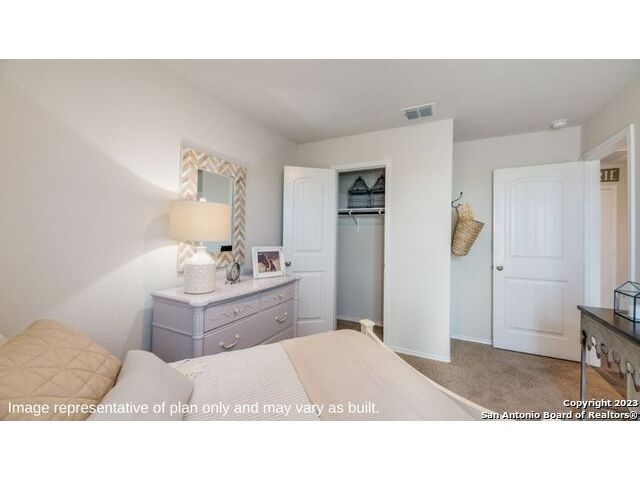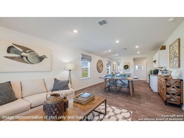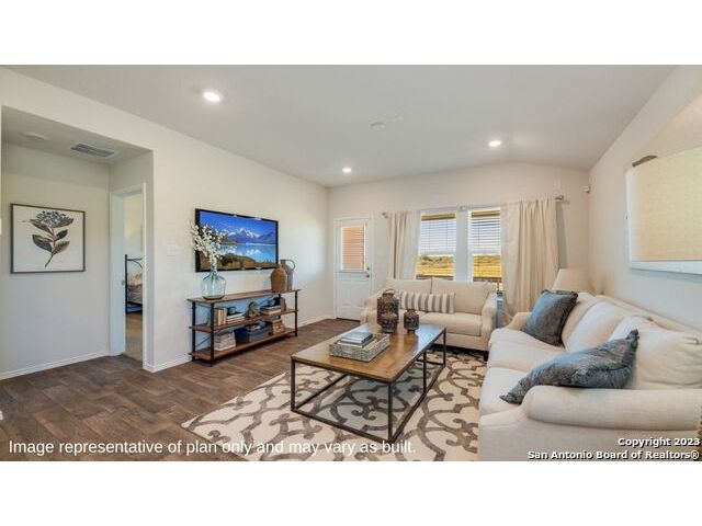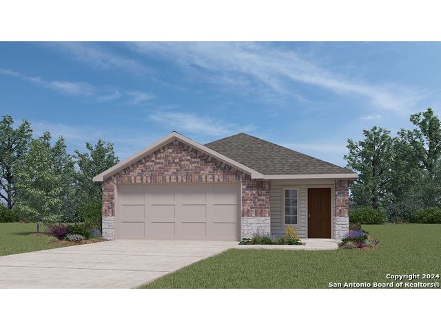 Introducing The Caroline plan, a stunning one-story home featured at Winding Creek in New Braunfels, TX. The Caroline is sure to impress with its classic front exteriors, 3 bedrooms, 2 baths, and 2-car garage. An elongated foyer welcomes you into an open concept kitchen, dining area, and living room, perfect for entertaining. This home's kitchen includes shaker style cabinetry, quartz counter tops, stainless steel appliances and a spacious kitchen island with a deep farmhouse style single basin sink. The main bedroom is located right off the living room and features a semi-vaulted ceiling and an attractive ensuite bathroom. You'll enjoy getting ready every day with plenty of bathroom space and modern bathroom features including quartz countertops, shaker style cabinets, a tiled walk-in shower and spacious walk-in closet. If privacy is your top priority, this ensuite bathroom comes standard with a separate water closet. Every bedroom has quality carpet, a closet, and windows for plenty of natural lighting. Whether these rooms become bedrooms or other bonus spaces, there is sure to be comfort and functionality. Additional features include a back patio that overlooks a fully landscaped and irrigated yard, sheet vinyl flooring in entry, living room, and all wet areas, and quartz countertops and tiled flooring in all secondary bathrooms. This home also comes equipped with our HOME IS CONNECTED base package. Using one central hub that talks to all the devices in your home, you can control the lights, thermostat and locks, all from your cellular device.