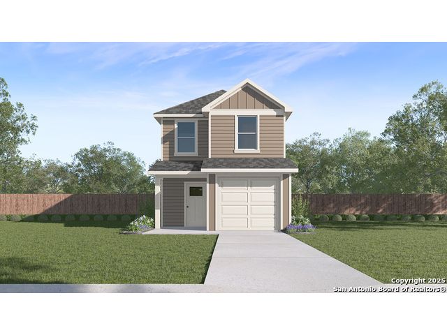 The Linnet is a charming two-story home featured at Blue Ridge Ranch in San Antonio, TX. Featuring 2 classic front exteriors, this 3 bedroom, 2.5 bathroom home also offers 1419 square feet of living space and a 1-car garage. A front porch (per plan) welcomes you into the home and opens to the gourmet kitchen which includes quartz counter tops, quality cabinets, stainless steel appliances and an open concept floorplan with the kitchen flowing seamlessly into the dining room and living room. The main bedroom has an attractive ensuite bathroom that features a quartz vanity countertop and quality cabinetry. Enjoy additional storage with a spacious walk-in closet located off of the primary bathroom. Your secondary bedrooms all feature quality carpet flooring and a closet, and can be used as bedrooms, offices, work out spaces or other bonus rooms. The possibilities are endless with The Linnet floor plan. Additional features include sheet vinyl flooring in entry, living room, and all wet areas, quartz counter tops in all bathrooms and HOME IS CONNECTED base package. Using one central hub that talks to all the devices in your home, you can control the lights, thermostat and locks, all from your cellular device.