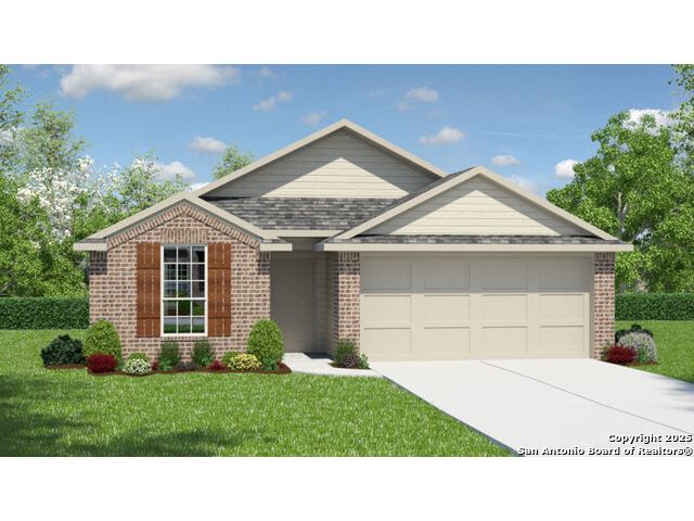 Step into The Brown floor plan at High Garden in Comfort, TX, a single-story home featuring 3 bedrooms and 2 bathrooms. The Brown also offers 3 classic front exteriors, a 2-car garage and 1651 square feet of comfortable living. The Brown features classic design and modern features that blend seamlessly to create the perfect everyday space. A welcoming foyer leads to a formal dining room with large windows and a connecting doorway to the galley kitchen. The kitchen includes plenty of cabinet storage, quartz counter tops, subway tile backsplash, stainless steel appliances, and a electric cooking range. A large kitchen island with a deep, single basin sink overlooks the spacious living room. The large first bedroom suite is located off the family room and features a double vanity sink, separate tub and walk-in shower and a private water closet. You'll have all the space you need to get ready in the morning with a large walk-in closet. Spacious secondary bedrooms with large closets and quality carpet flooring, a second full bathroom with plenty of natural light, and a utility room are conveniently located off the living room. Additional features of The Brown include tall 9-foot ceilings, 2-inch faux wood blinds throughout the home, luxury vinyl plank flooring in the entry, family room, kitchen, and dining area, ceramic tile in the bathrooms and utility room, and pre-plumb for water softener loop. You'll enjoy added security in your new home with our Home is Connected features. Using one central hub that talks to all the devices in your home, you can control the lights, thermostat and locks, all from your cellular device.