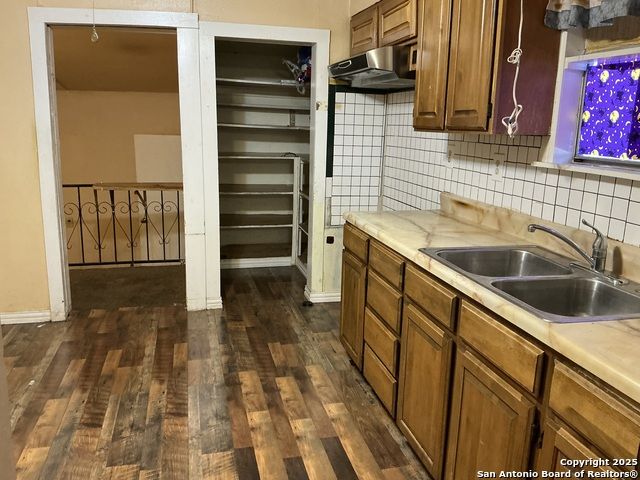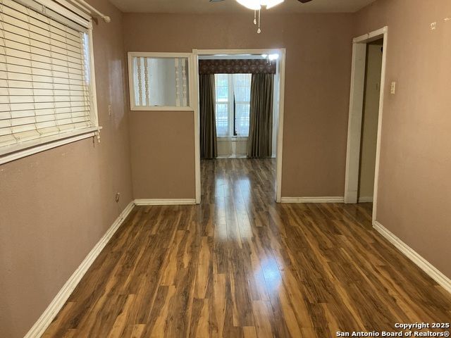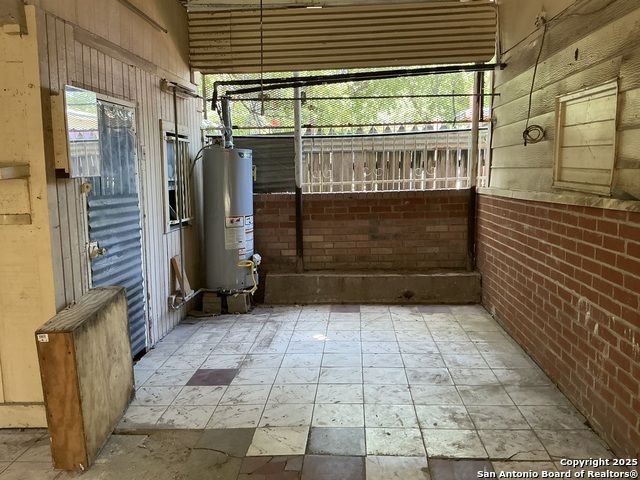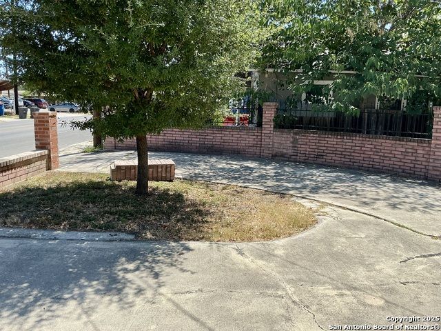 This hidden gem offers the perfect blend of convenience, charm, and space! Ideally located, you'll be just minutes from Our Lady of the Lake University, Elmendorf Lake, Woodlawn Lake, shopping, dining, schools, churches, and major commuter routes - with Downtown San Antonio only a short drive away. This inviting 3-bedroom, 2-bath single-story home is framed by majestic shade trees and timeless brick walls, giving it a warm courtyard-like feel. A large circular drive connects to an oversized carport - a car enthusiast's dream! Inside, you'll find stylish wood laminate floors, sculpted trim and ornate ceiling fans that complement a flowing floor plan. The main living area opens into a spacious dining room and an eat-in kitchen with gas cooking and a walk-in pantry. The generous primary suite features a chic vanity, tiled walls, and a walk-in shower. Secondary bedrooms are well-sized and share a centrally located guest bath. Adding even more versatility, a 21' x 12' flex room can serve as a family room, game room or even a fourth bedroom - the choice is yours. Step outside to an impressive 25' x 24' covered patio with soaring ceilings, tiled flooring, and a private, serene atmosphere. Perfect for weekend BBQs, gatherings, or game-day parties, this space connects seamlessly to the oversized carport and includes a handy shed with a loft for storage. Whether you're a first-time buyer, downsizing, or an investor expanding your portfolio, this home is truly a rare find. Welcome home!