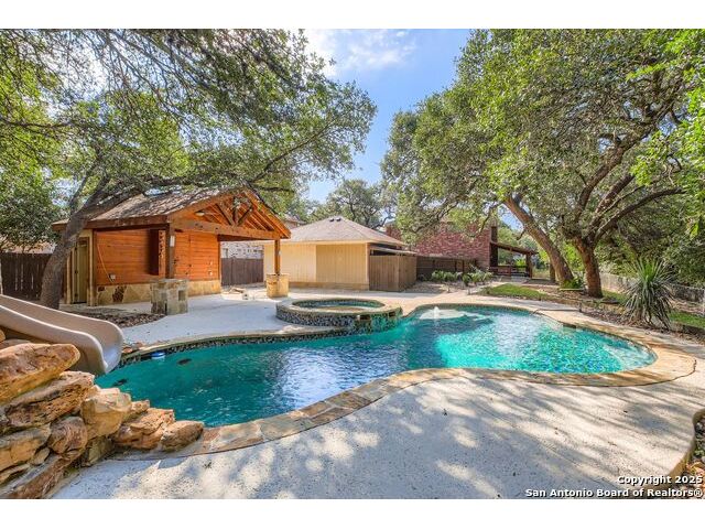 Traditional 3,714 sq ft., Two-Story Brick Home, a Southern charmer set on Greenbelt with one of the largest lots in the Redland Oaks neighborhood. This freshly painted home offers 5 bedrooms plus an office that could serve as a 6th, 3 beautifully updated baths, and multiple living and dining areas perfect for gatherings of all sizes. The kitchen features gas cooking, granite countertops, and stainless steel appliances, including a premium French-door refrigerator with dual freezer drawers, making meal prep a dream. The bathrooms shine with designer upgrades, while new flooring and lighting throughout the home bring a fresh, updated feel. Downstairs, a cozy fireplace invites relaxing evenings, while upstairs a massive 480+square-foot family room offers endless possibilities from a home theater, to game room, playroom or home gym. Splash down the pool slide, soak in the hot tub, or sip sweet tea on the spacious patio under the shade of mature trees. With tons of space for barbecues, lawn games, and summer nights spent stargazing, this home truly embodies Southern living at its best. With 3,714 square feet of living space and timeless charm, this home is ready to welcome you - with space to gather, relax, and make lifelong memories.