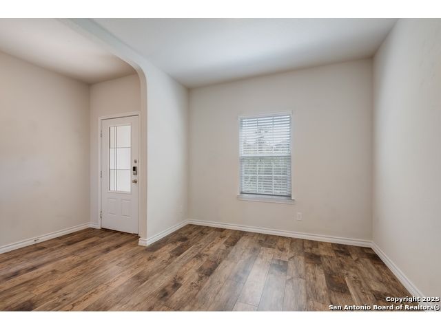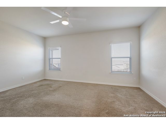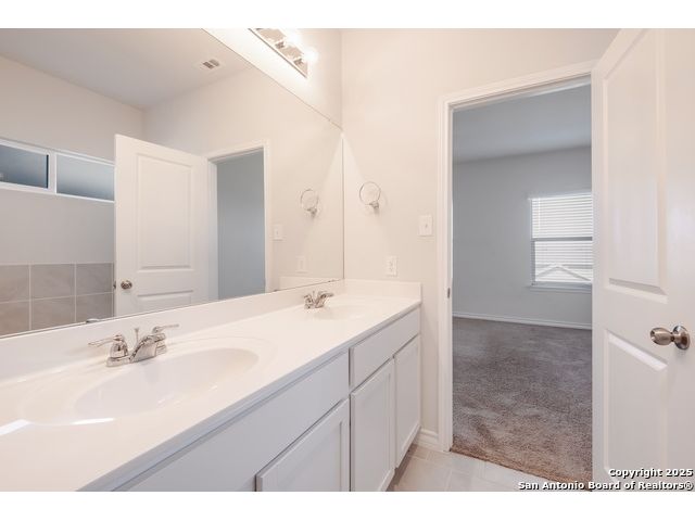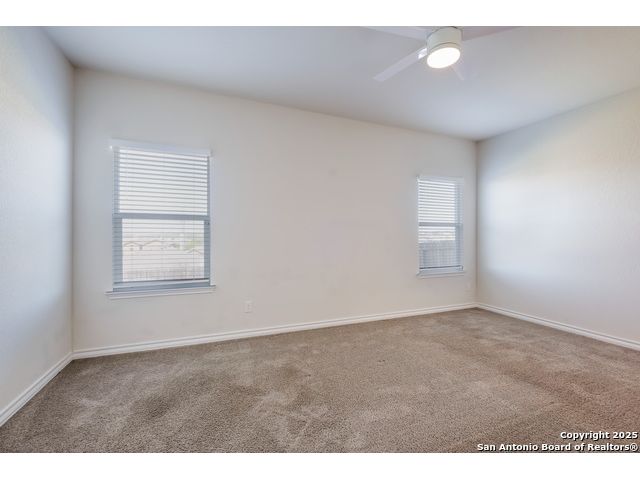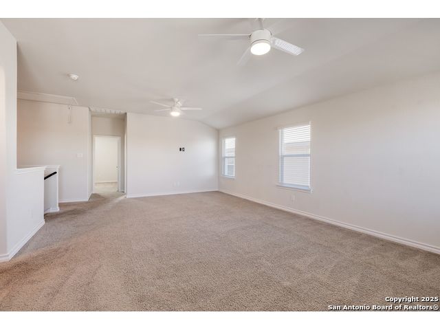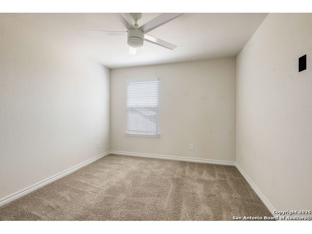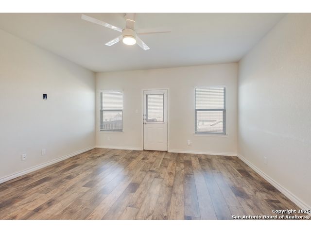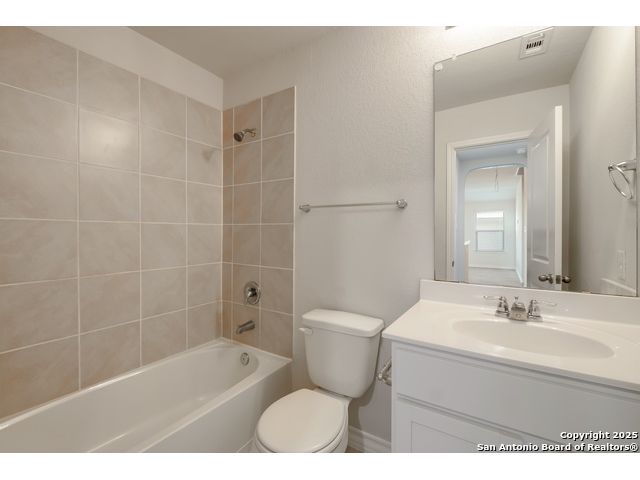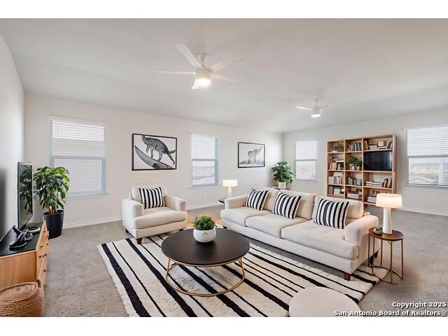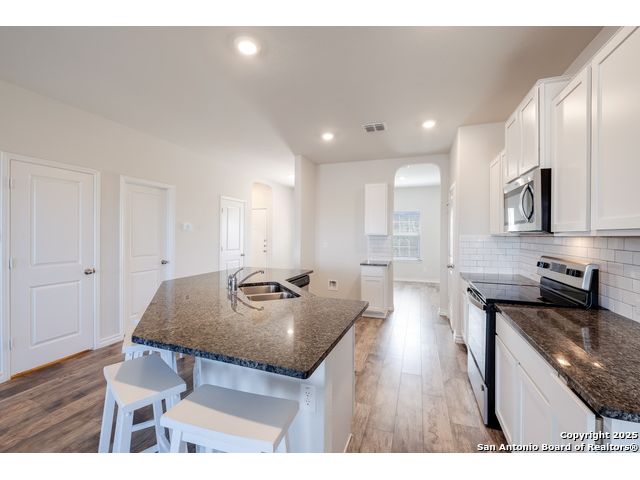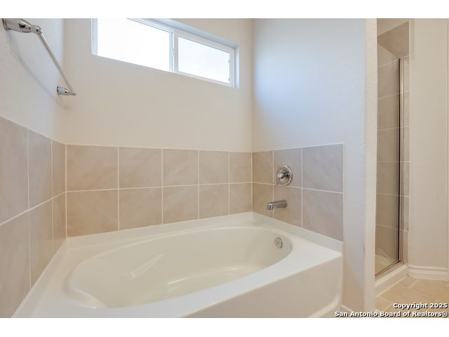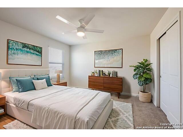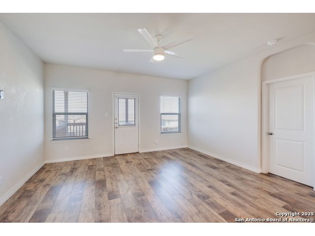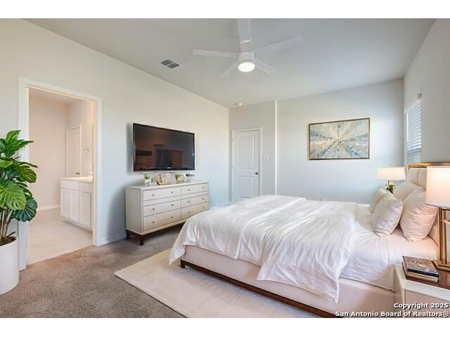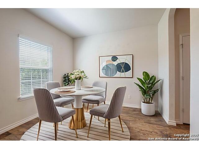 Welcome to this nearly new home, just minutes from Loop 1604 and Lackland AFB. From the curb, the brick exterior and established yard set a welcoming tone. Step inside to find a low-maintenance interior with vinyl plank flooring that carries through the main living areas. The entry opens to a flexible dining space that could also serve as a home office. Continue into the island kitchen, complete with a breakfast bar and open sightlines into the living area-perfect for everyday living and entertaining. From here, step outside to the covered patio and privacy-fenced yard for an easy extension of your living space. The primary suite is tucked downstairs, offering a spacious walk-in closet and a full bath with dual vanities, a soaking tub, and a separate shower. Upstairs, a large living area anchors four additional bedrooms, giving you plenty of room to spread out, work, or play. Additional features include a two-car garage with opener, arched doorways, faux wood blinds and more. This home combines modern convenience with room to grow-ready for its next chapter with a new owner. Same day showings available!