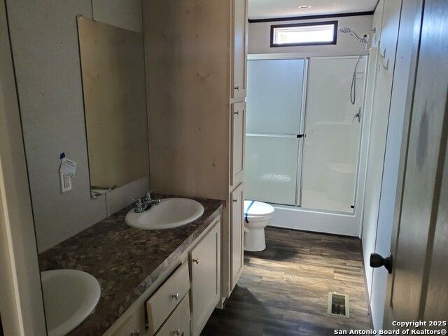 Exclusive Agency Listing. All agents may advertise this property with exceptions of MLS and yard signs. HUD homes are sold "as is". HUD Case #514-204420. Gated-country living on 2.21 acres! 3/2 manufactured home with an open living/dining layout, split primary suite, and a spacious kitchen. Expansive, usable land offers room for a garden, workshop, or extra parking. Enjoy privacy, space, and easy access to San Antonio conveniences. No representation is made to information provided including taxes, sqft, schools, features, etc. Buyer must verify all information.