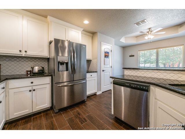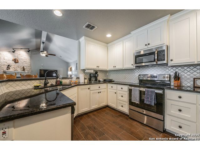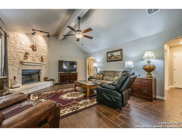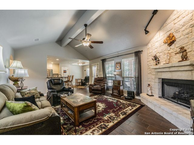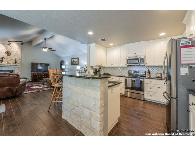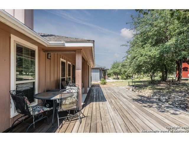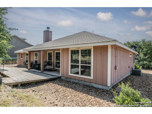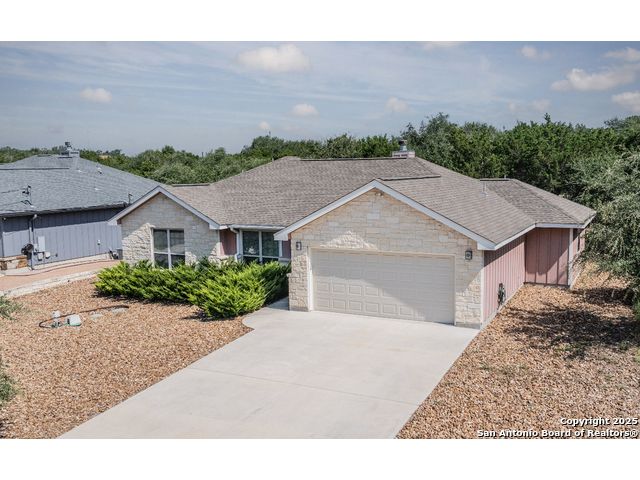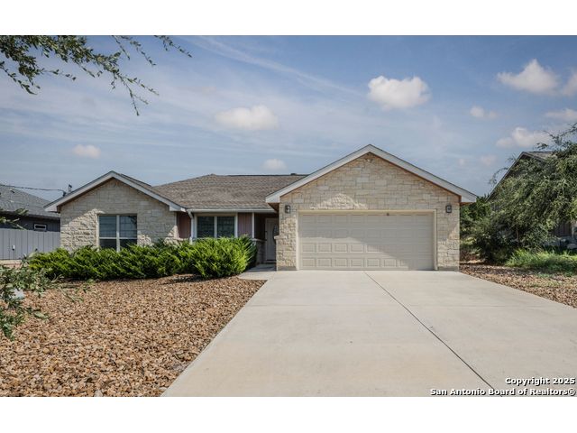 ***PRICED TO SELL***This Texas Hill Country home sits on 0.56 acres in the highly sought after Comal ISD in Rancho Del Lago West subdivision with NO HOA! Beautiful open floor plan, high ceilings and endless upgrades with designer touches throughout. From the kitchen with the white shaker style cabinets, granite counter tops, white arabesque back-splash tile and stainless steel appliances. Floor to ceiling gas burning fireplace, vaulted ceilings in the living room and master bedroom. En suite master bath with his and her walk-in closets and oversize shower and garden tub. Enjoy the peaceful backyard with the deck and 10x12 storage shed. Extra features that convey are the Generator (gas or propane) that is connected to the home by a switch, 100 gallon leased Propane Tank, insulated Garage Door, Dual Reverse Osmosis Water Softener, (2) 50 gallon rain water barrels and so much more. Do not miss out on this gem of a home just north of Canyon Lake and convenient to Wimberley, New Braunfels, San Marcos, Austin and San Antonio. Low maintenance yard, and with NO HOA makes this a perfect primary home, weekend home, or even a Short Term Rental. Schedule your showing today! Stainless Steel Refrigerator, Washer and Dryer will convey!