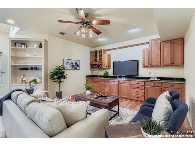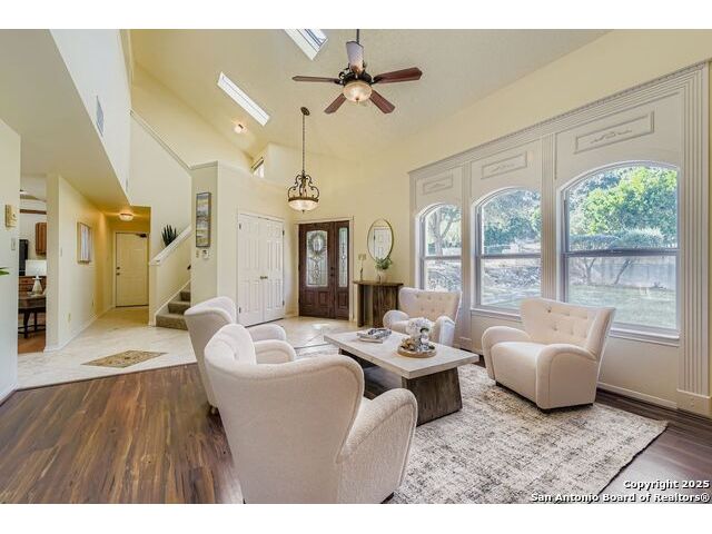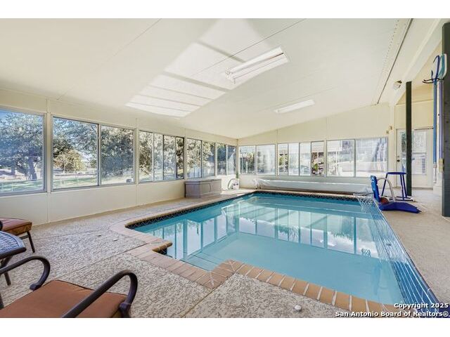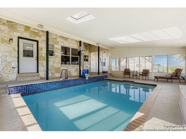 Welcome to 6606 Laurel Hill, a one-of-a-kind property in the desirable Oak Hills area near the Medical Center. Situated on just over half an acre with mature trees, this home also offers fabulous views of downtown San Antonio and Fort Sam fireworks. Inside you'll find fresh carpet, an indoor swimming pool with heater and indoor controls for year-round enjoyment, a double-sided fireplace, skylights, and two surround sound areas. The home is equipped with a central vacuum system, water softener with reverse osmosis, intercom, security, and home automation system. The primary suite includes an ensuite with a morning kitchen and undercounter refrigerator. A three-car garage with overhead storage, driveway security gate, durable metal roof, Don Young double-paned windows, and dual central air units with heat pumps complete this exceptional property.