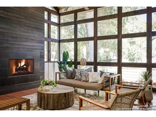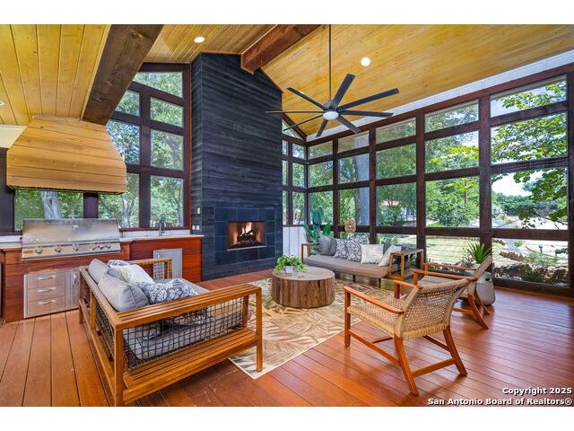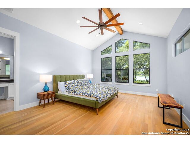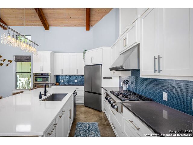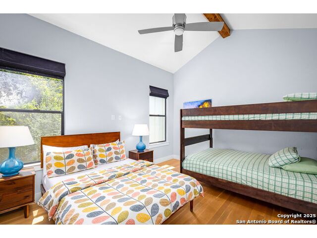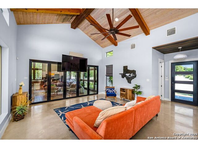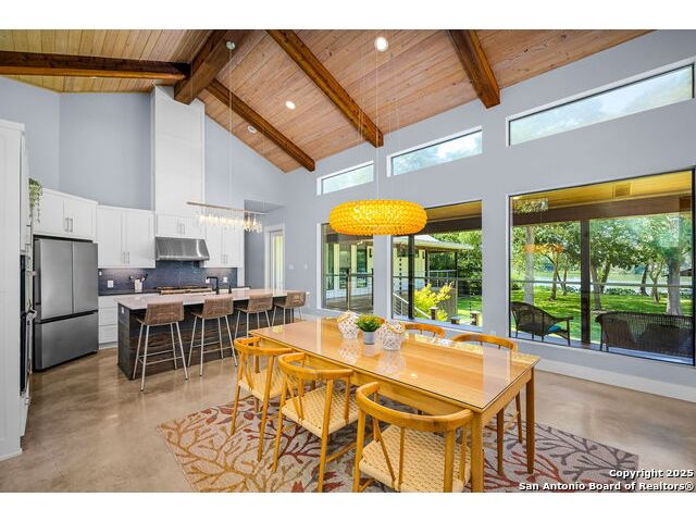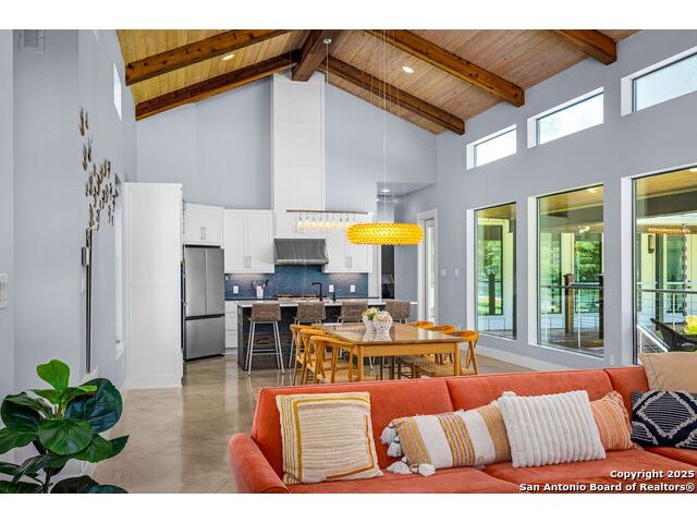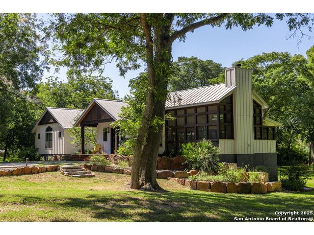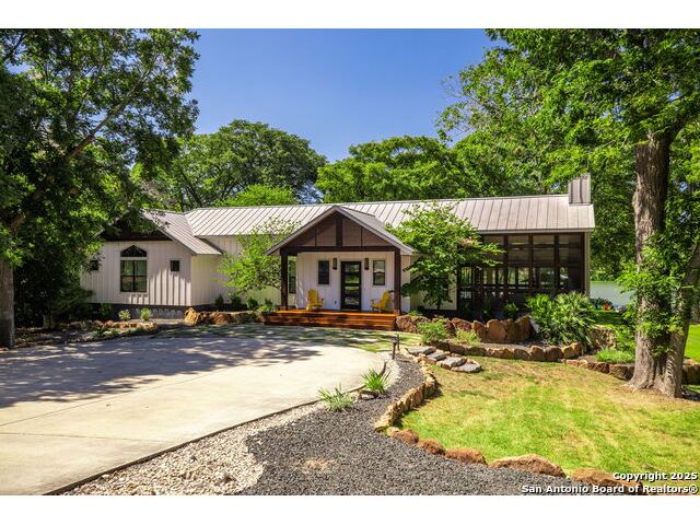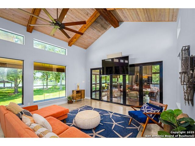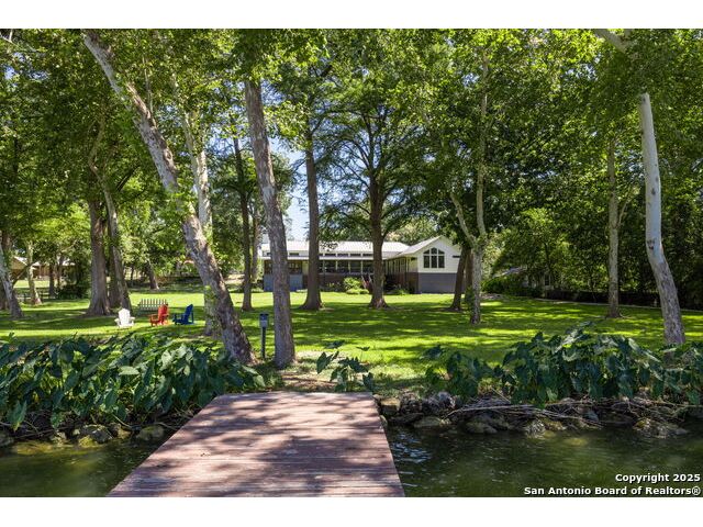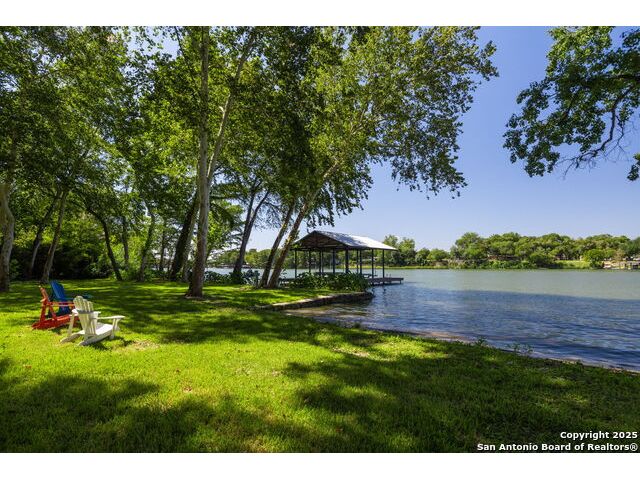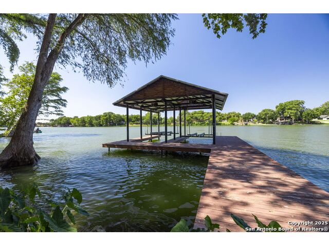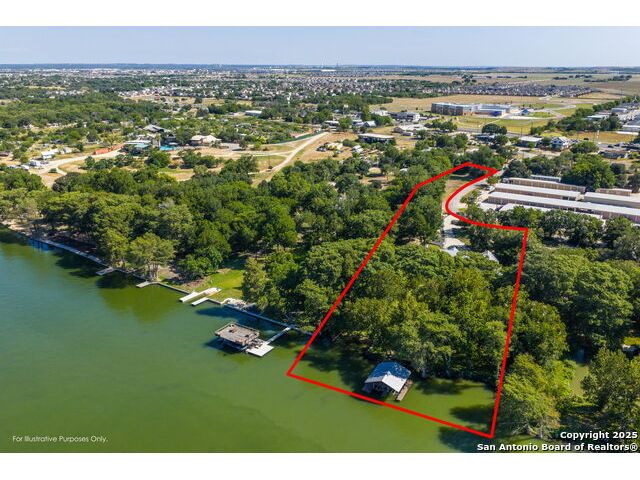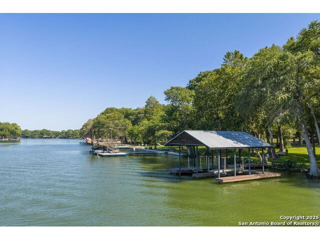 Stunning Custom Lake Dunlap Waterfront Home | 1.21 Acres | STR Allowed. Incredible opportunity to own a premier custom-built lakefront retreat on 127' of coveted Lake Dunlap shoreline. This 3-bed, 3.5-bath modern farmhouse sits on a lush 1.21-acre lot with mature oaks, a private gated entry, has no HOA, no city taxes, and is short-term rental approved. The home features soaring wood cathedral ceilings, open-concept living with panoramic lake views, and a luxury kitchen with gas range, large island, and custom cabinetry. The 513 sq. ft. screened summer kitchen includes a Blaze grill, Thermador vent, and a hybrid fireplace-perfect for indoor/outdoor entertaining. The owner's suite offers lake views, private patio access, spa-style bath with river rock walk-in shower, and oversized closet. A detached 1,050 sq. ft. garage includes a 1-car bay plus flexible workspace. Enjoy boating, jet skiing, and kayaking from your private boathouse with two lifts, and a boulder rock retaining wall built for long-term durability. The 561 sq. ft. covered back patio made from Brazilian Ipe wood completes this one-of-a-kind lakefront gem.