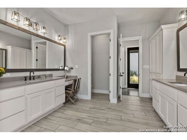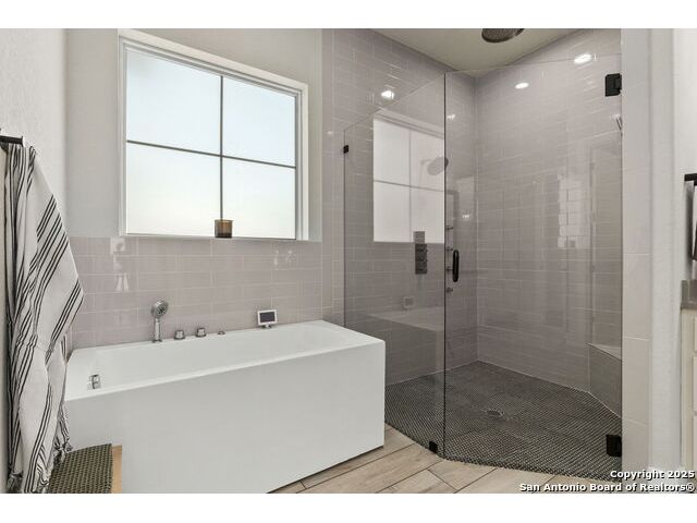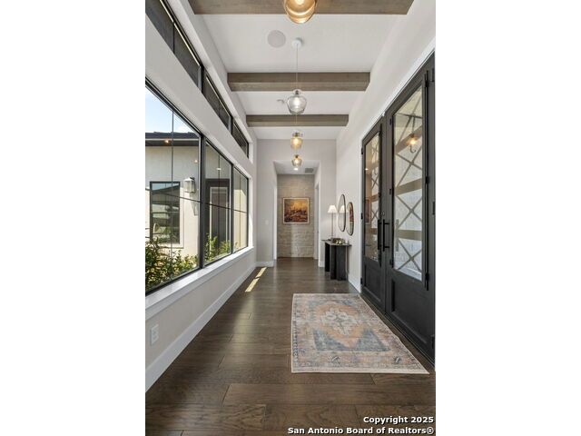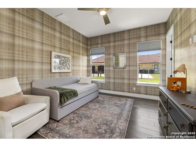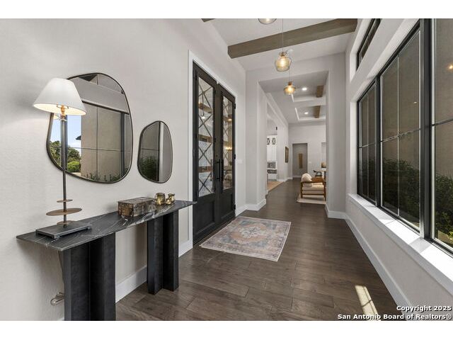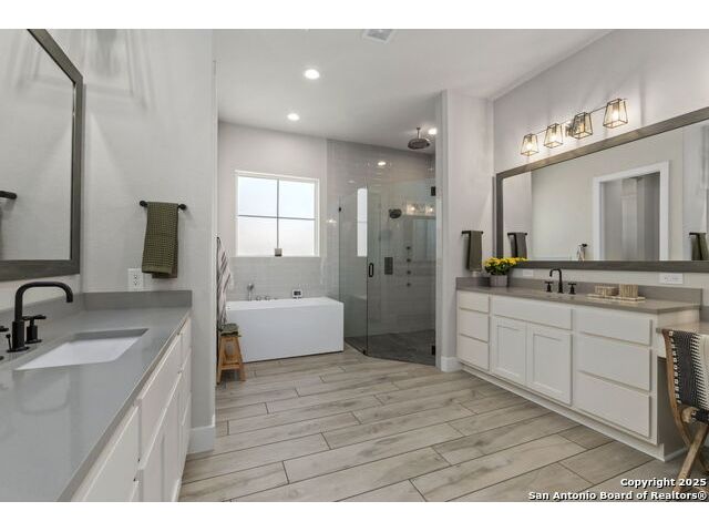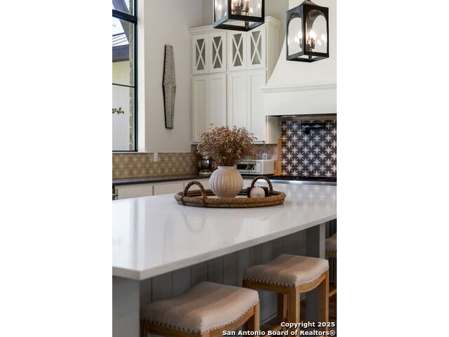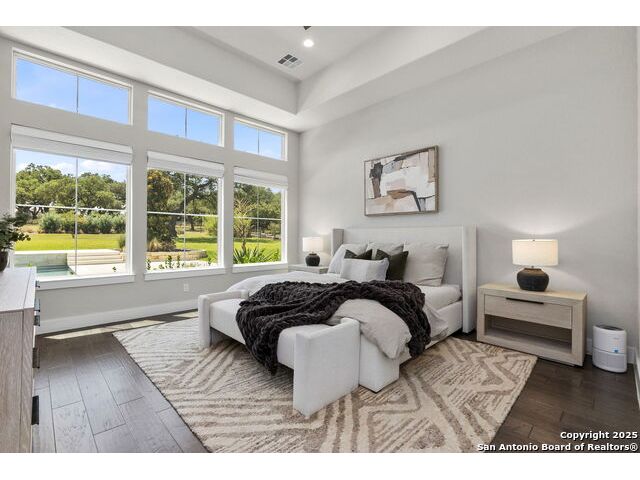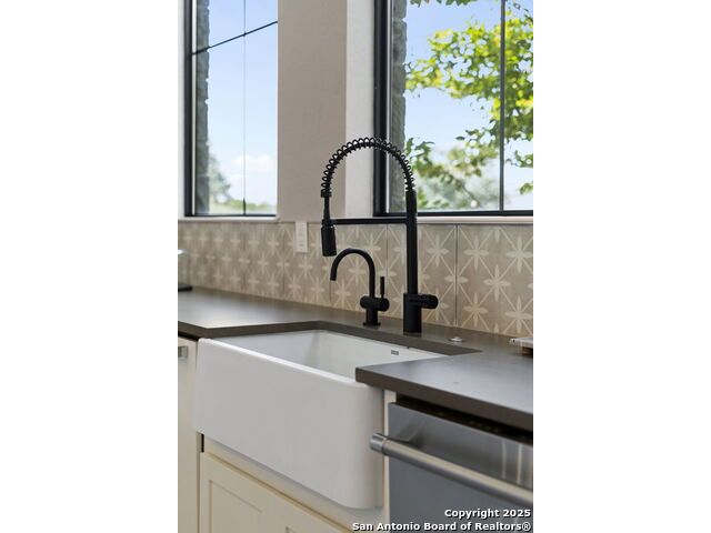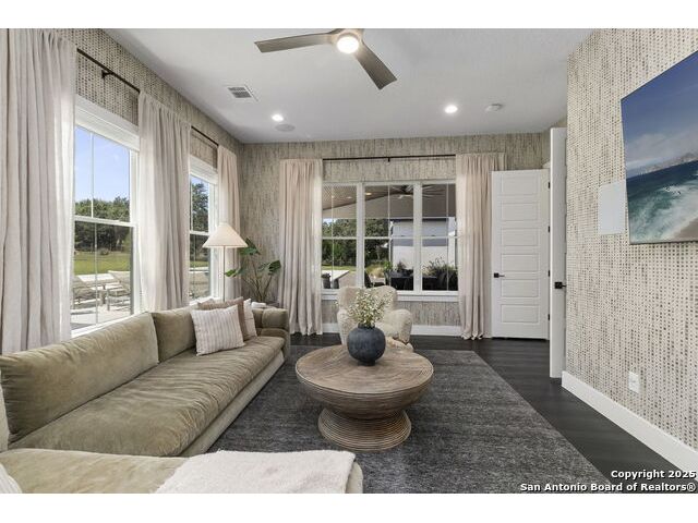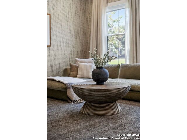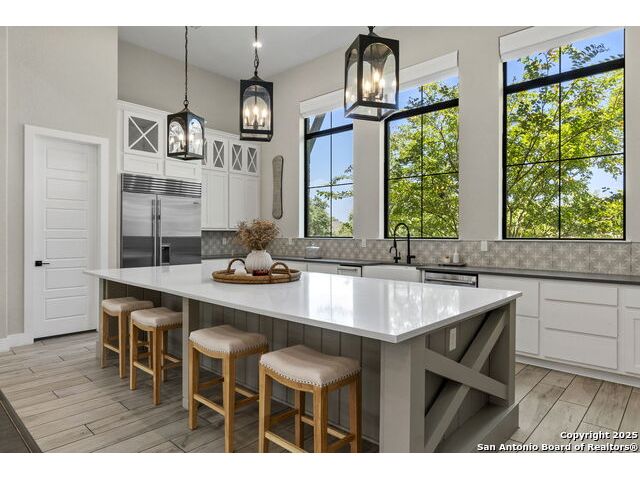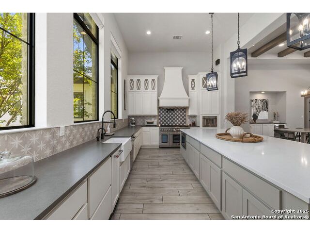 Experience refined Texas Hill Country living in this stunning single-story modern farmhouse perched on a picturesque acre in The Bristow of Upper Balcones. Sunlit spaces, soaring ceilings, and natural textures create a warm yet sophisticated retreat for those seeking a harmonious blend of elegance and comfort. At the heart of this welcoming residence is an open-concept living space, beautifully anchored by a striking floor-to-ceiling stone fireplace. The gourmet kitchen is a delight, showcasing an oversized quartz-topped island, top-tier Thermador and Sub-Zero appliances, and designer finishes that elevate everyday dining. Multiple dining areas provide versatility for entertaining, including a newly built, well-appointed covered outdoor kitchen and dining space that invites alfresco gatherings. Enjoy picturesque views of the sparkling pool, spa, and sprawling lawn visible from both the living room and kitchen, enhancing the seamless connection between indoor and outdoor living. The flexible layout features a private primary suite and guest quarters on one side-ideal for visitors or as a potential office space-while two additional bedrooms, a stylish den, and a cozy study occupy the opposite wing. The side-entry three-car garage offers discreet access and ample storage, adding to the home's smart design. With its remarkable curb appeal and meticulous attention to detail, this property is a true gem. Conveniently located just minutes from the I-10 corridor, you can easily access the vibrant city of San Antonio or explore the enchanting Texas Hill Country.
