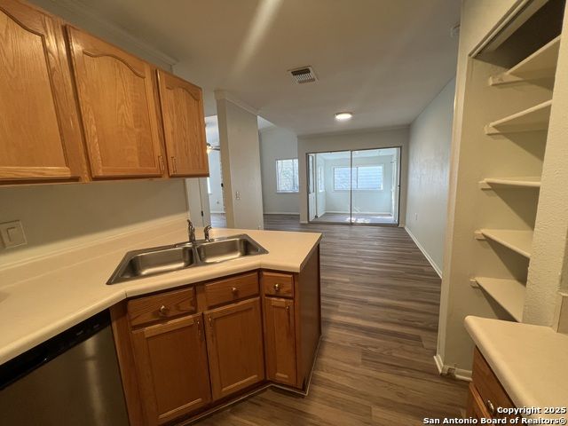 Clean, move in ready 2-bedroom 2-bath with 2-car detached garage. Main primary bedroom has 2 separate vanities. Second bedroom has a Walkin shower and single vanity with large Walkin closet. Nice little covered patio. Vinyl floors throughout, freshly painted. A clean, quiet, well shaded home.