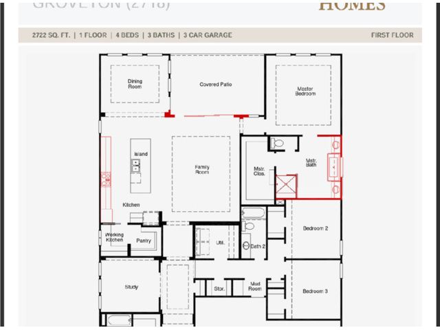 Indulge in luxury and comfort with the stunning Groveton floor plan, offering 2,722 sq. ft. of thoughtfully designed living space to suit your family's every need. This elegant one-story home features 4 spacious bedrooms, 3 beautifully appointed bathrooms, and a 3-car garage, combining style with everyday functionality. A private guest suite offers the perfect retreat for visitors or multi-generational living, while the luxurious primary suite serves as your own personal haven, complete with a spa-inspired bathroom featuring a freestanding soaking tub, separate shower, and dual vanities for a truly serene experience. The heart of the home is ideal for both daily life and entertaining, with a bright, open-concept layout and refined finishes throughout. Step outside to the expansive Texas-sized covered patio, where you can continue your gatherings under the stars or enjoy peaceful evenings in your backyard oasis. Whether you love hosting or simply appreciate fine design, the Groveton floor plan offers it all. Come discover the unmatched charm of Mayfair in New Braunfels-schedule your tour today!
